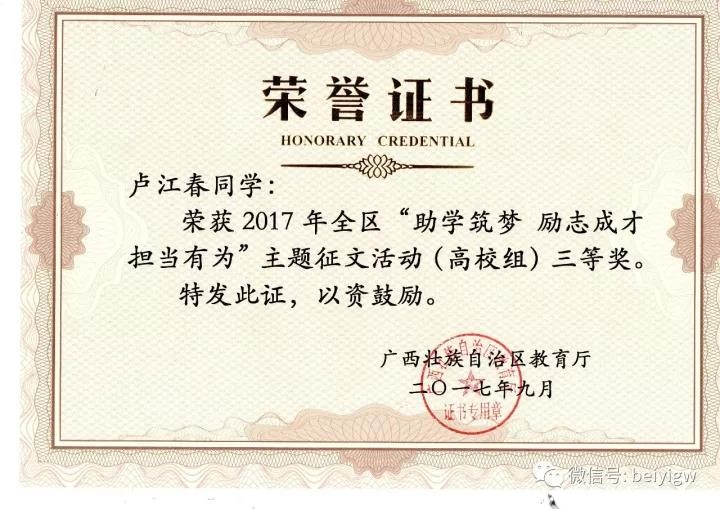 喜讯‖ 我院在2017年全区“助学筑梦、励志成才、 担当有为”主题征文活动中喜获佳绩
