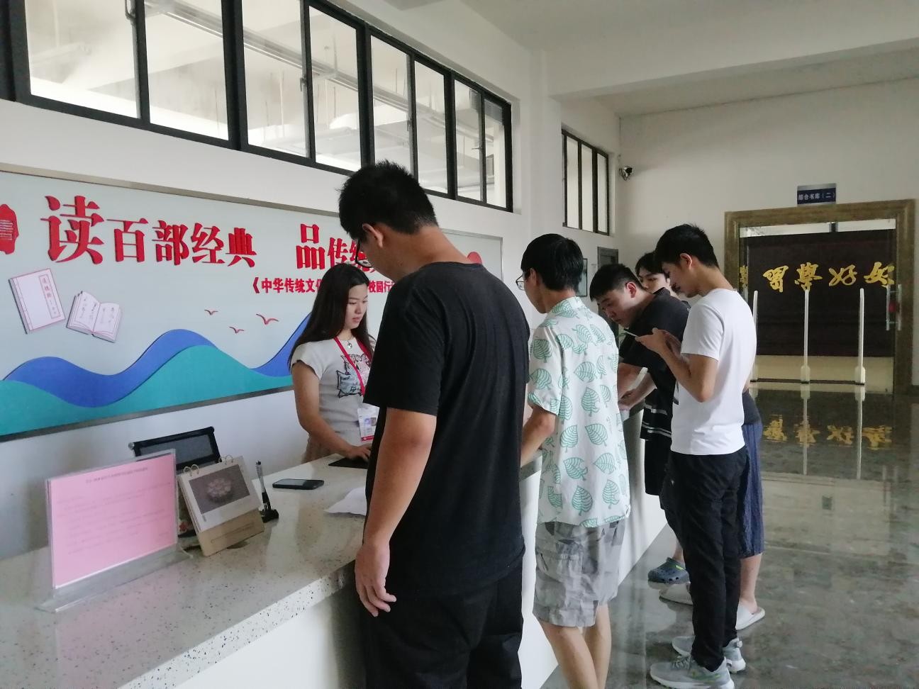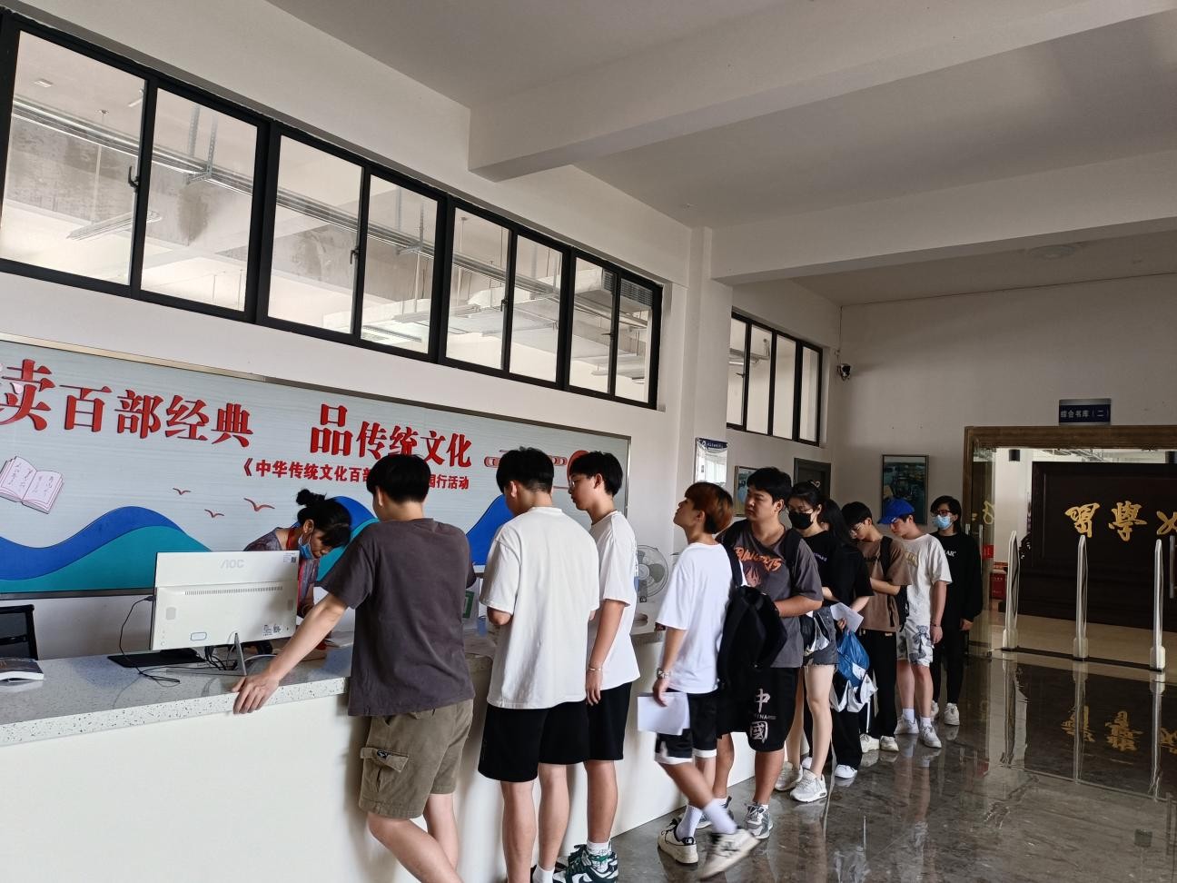 图书馆增派工作人员加班加点为学生办理离校手续