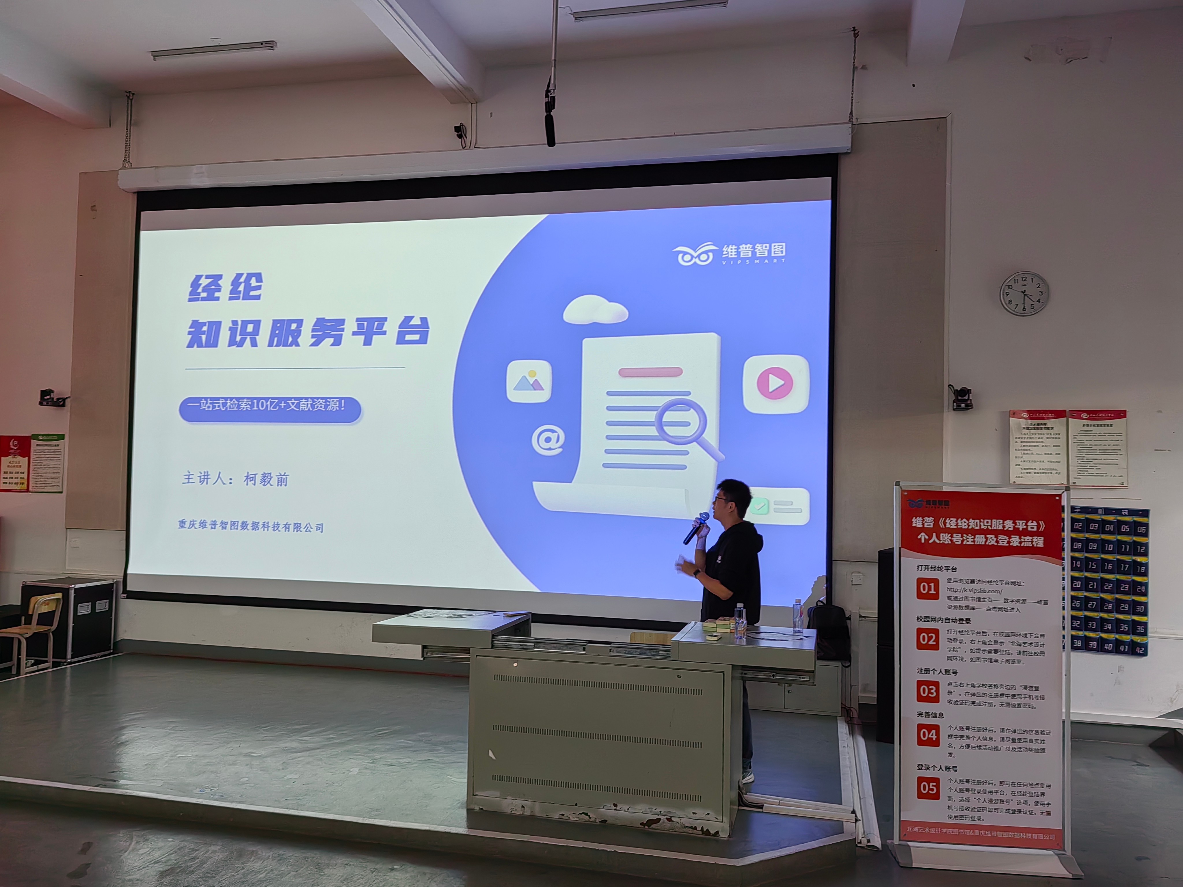 为了更好的帮助广大师生深入掌握维普经纶知识资源系统的功能与使用技巧,提高教职工的教科研水平以及同学们的学术素养,图书馆特邀重庆维普智图数据科技有限公司资深讲师柯毅前于3月26日下午来我校开展专题培训讲座。
