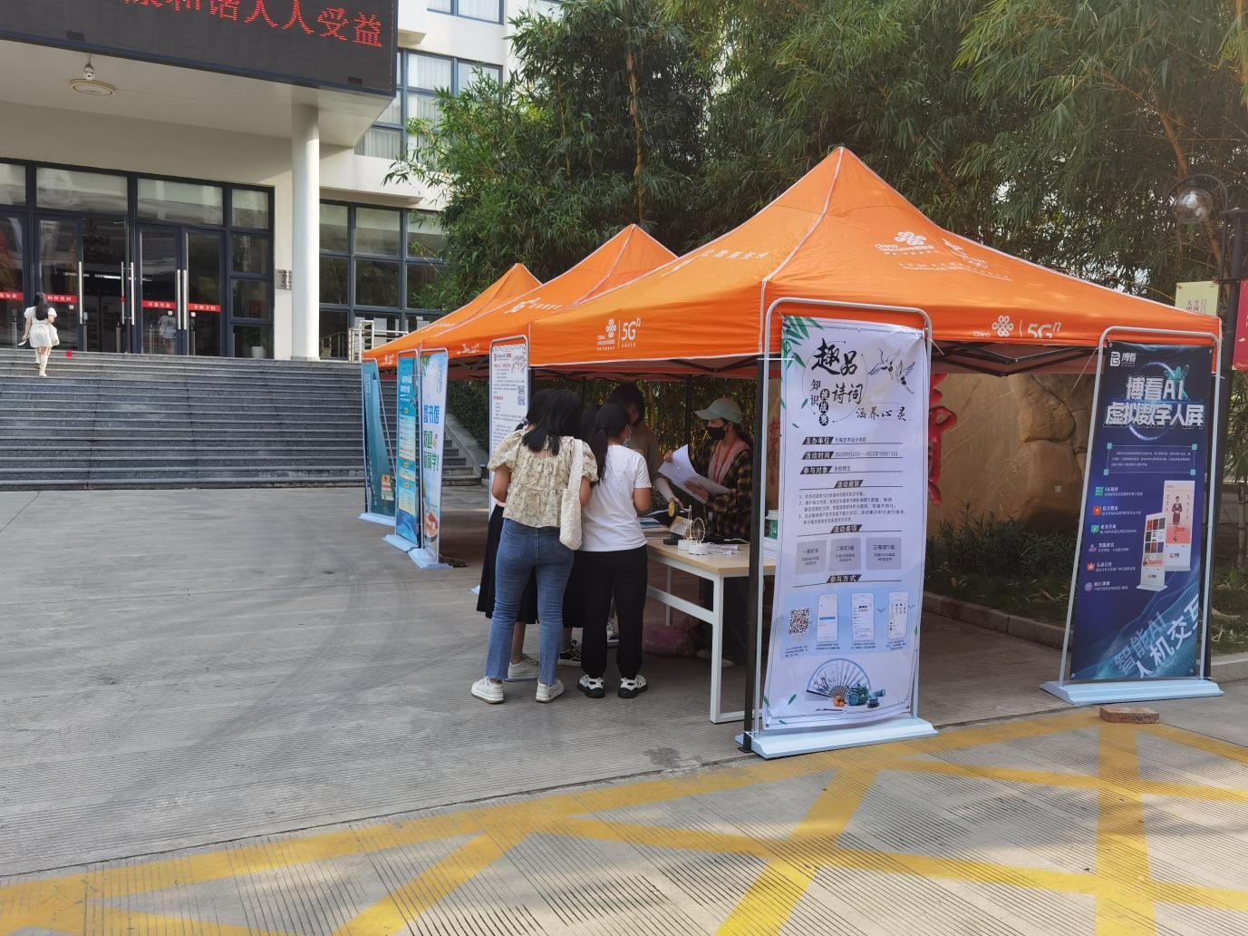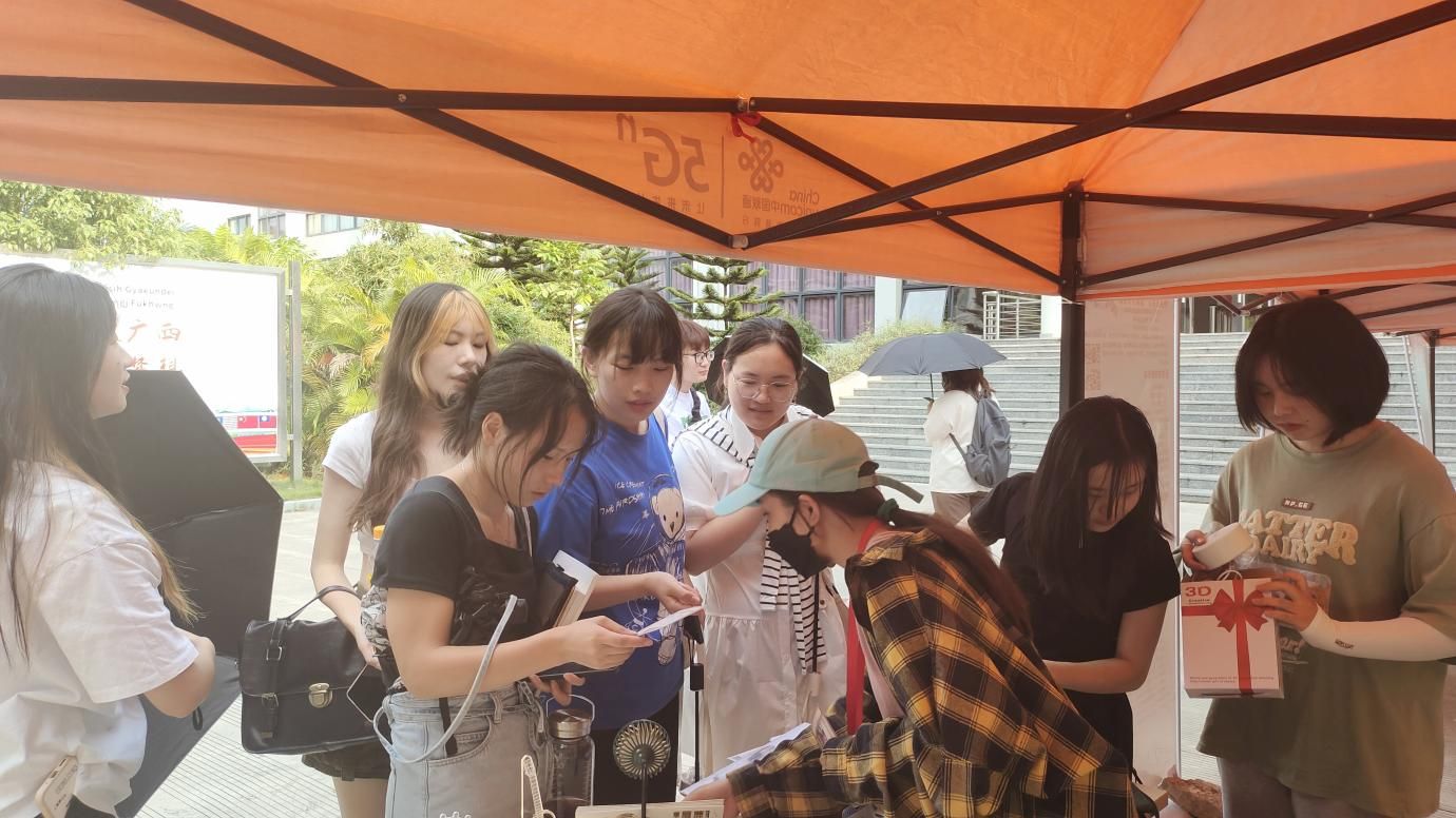 炎炎烈日下,同学们积极参与,兴趣浓厚,工作人员热心回答同学们咨询的问题。