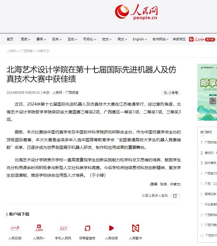 人民网:北海艺术设计学院在第十七届国际先进机器人及仿真技术大赛中获佳绩
