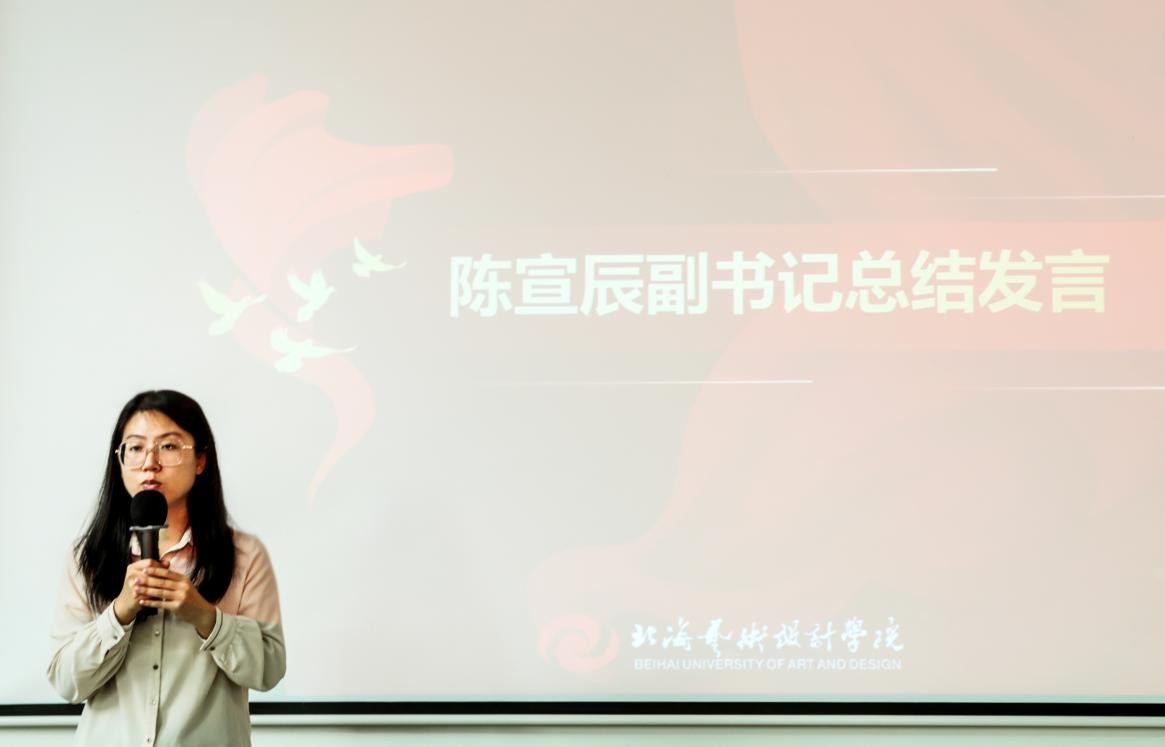 紧接着是建筑与环境艺术学院分团委副书记陈宣辰老师发言,陈老师提到在大学期间大家要注重团队合作与加强沟通协作的重要性,俗话说得好:“单丝不成线,独木不成林”,比起一个人单独行动,还不如采取多人并肩作战。我们要相互合作相互理解才能达到共赢。陈老师的绘声绘色总结演讲为同学们提供了新的视角或思考方式。激发了同学们对团队合作的思考,反思当前自身行为的不足,加深了学习信念,明确了未来的生活目标。