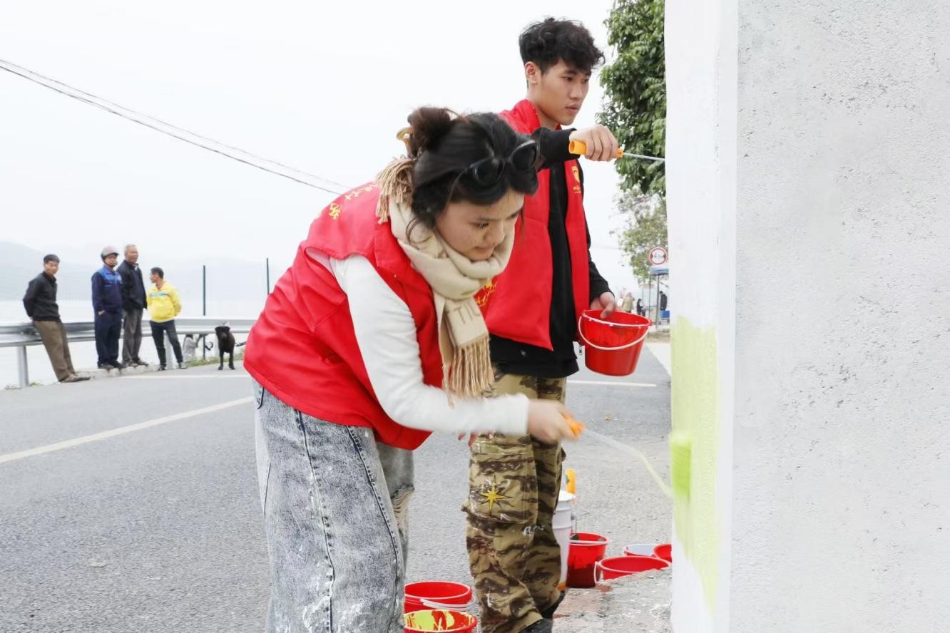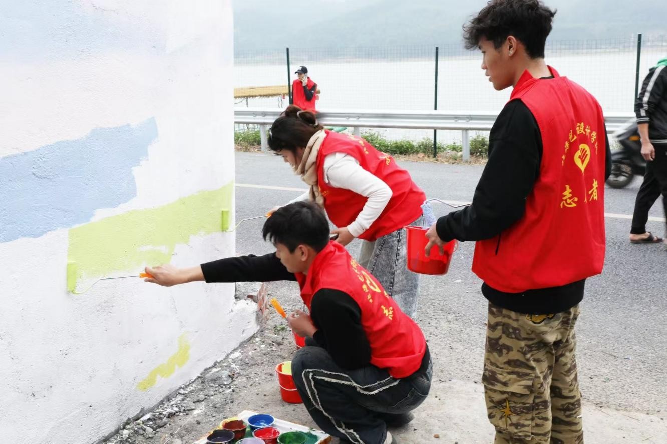 当艺术的笔触轻触乡村的墙面,当现代的创意融入古老的土地,一场关于文化与乡村的对话就此展开。曲樟乡井山村,这座坐落于青山绿水间的宁静村落,因“小洱海”之名而焕发出新的生机。在这里,艺术不再是遥不可及的殿堂之物,而是与乡村生活紧密相连的纽带。2025年2月22日—24日北海艺术设计学院建筑与环境艺术学院教师以及学院分团委学生会志愿者们来到合浦县曲樟乡井山村进行“小洱海”乡村振兴文化墙绘志愿者服务活动。