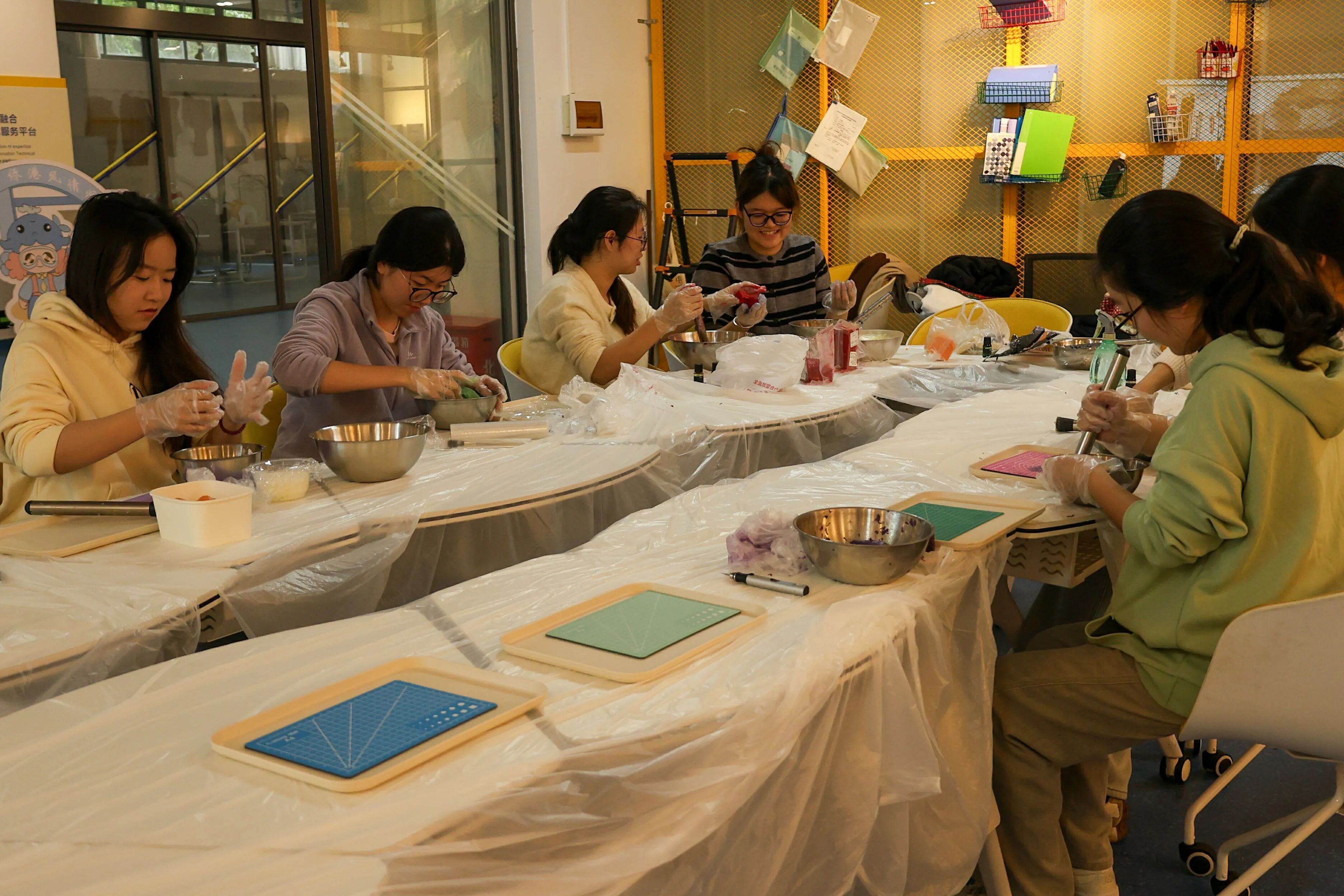学生沉浸在非遗古法制皂过程中