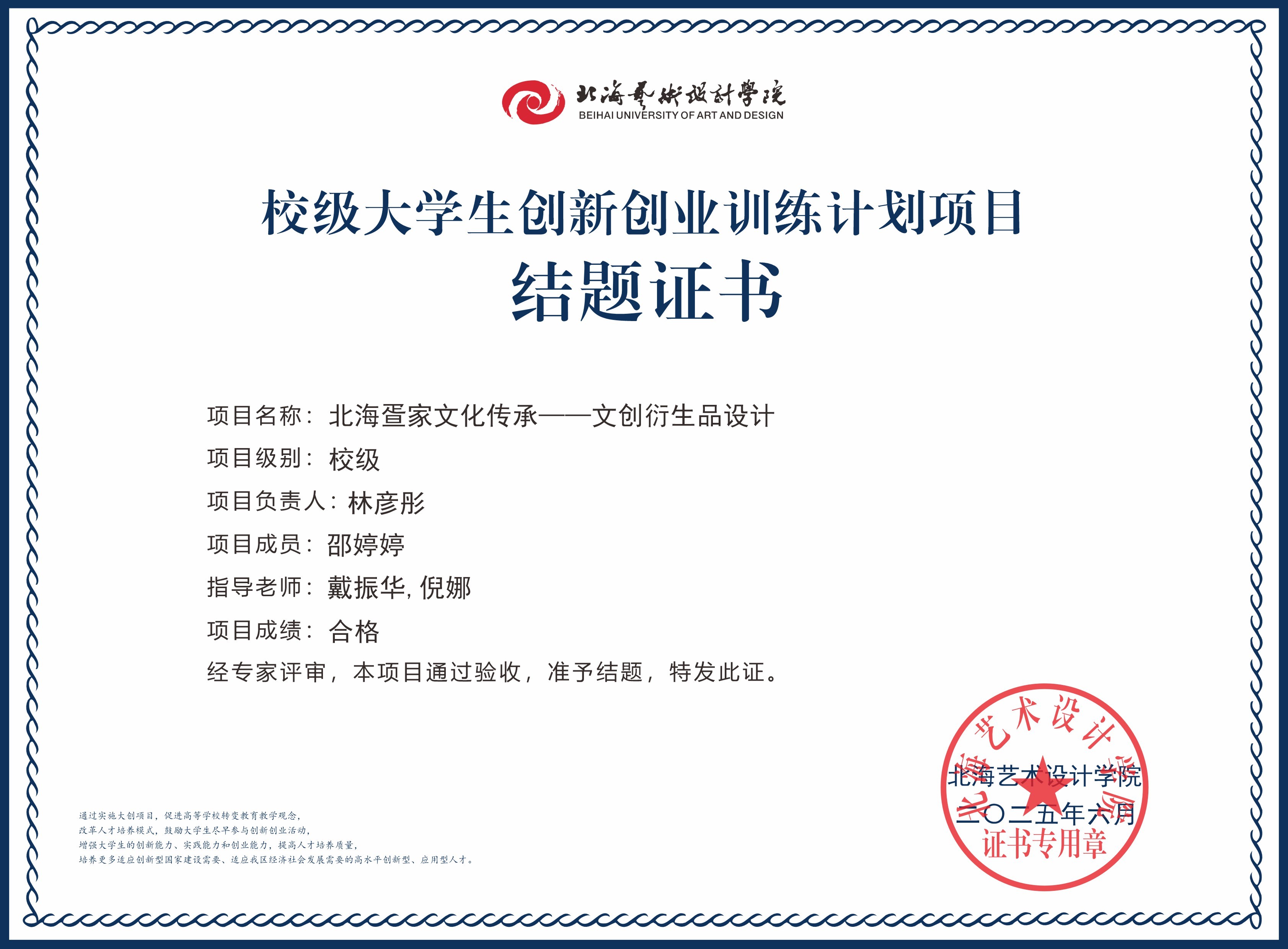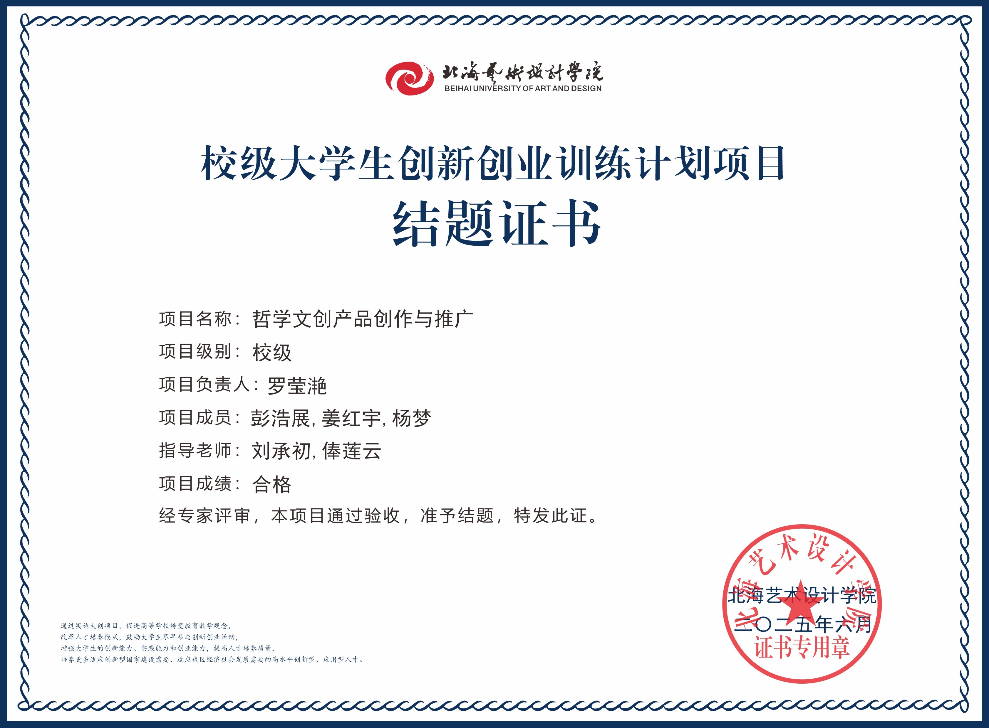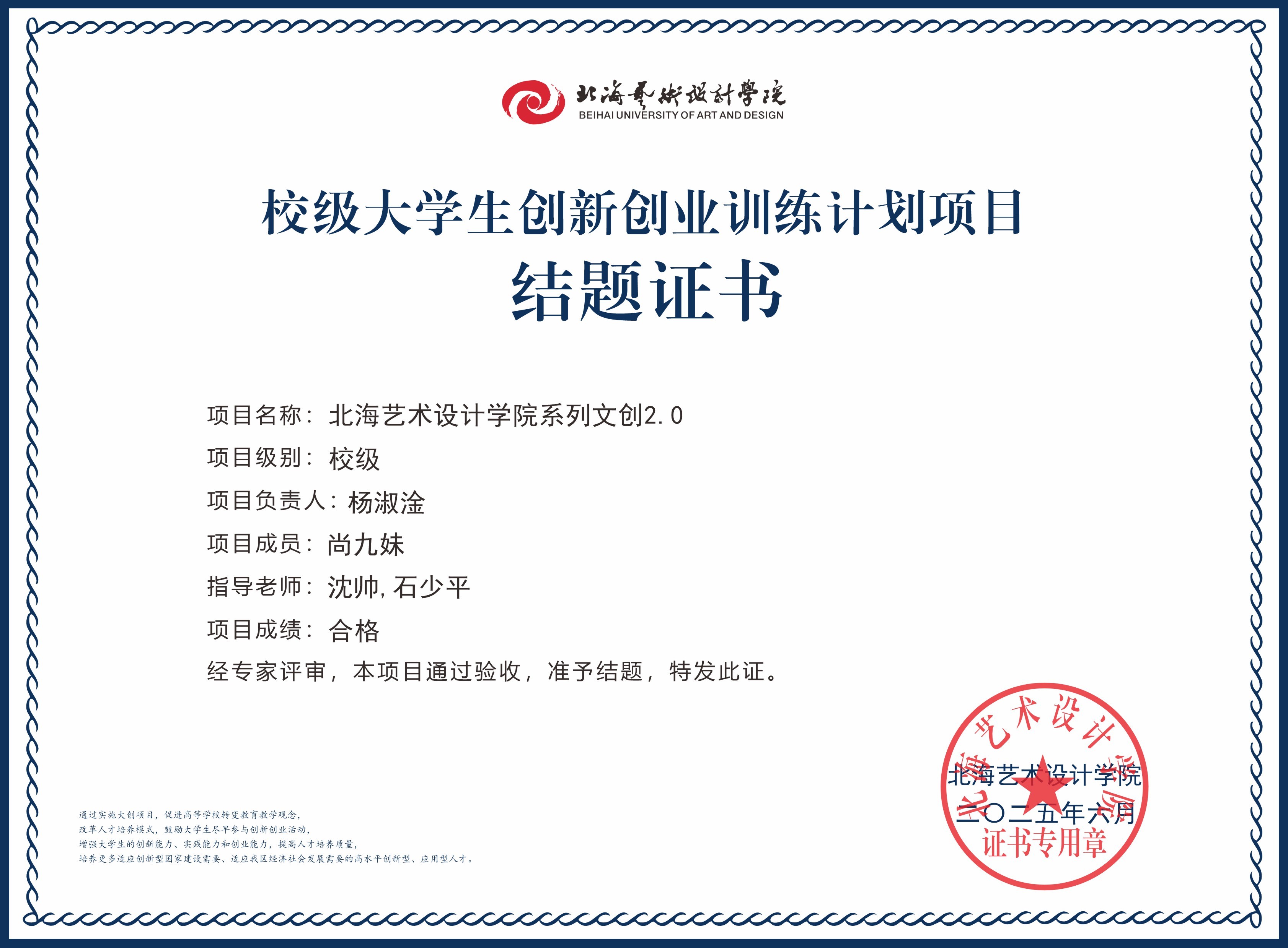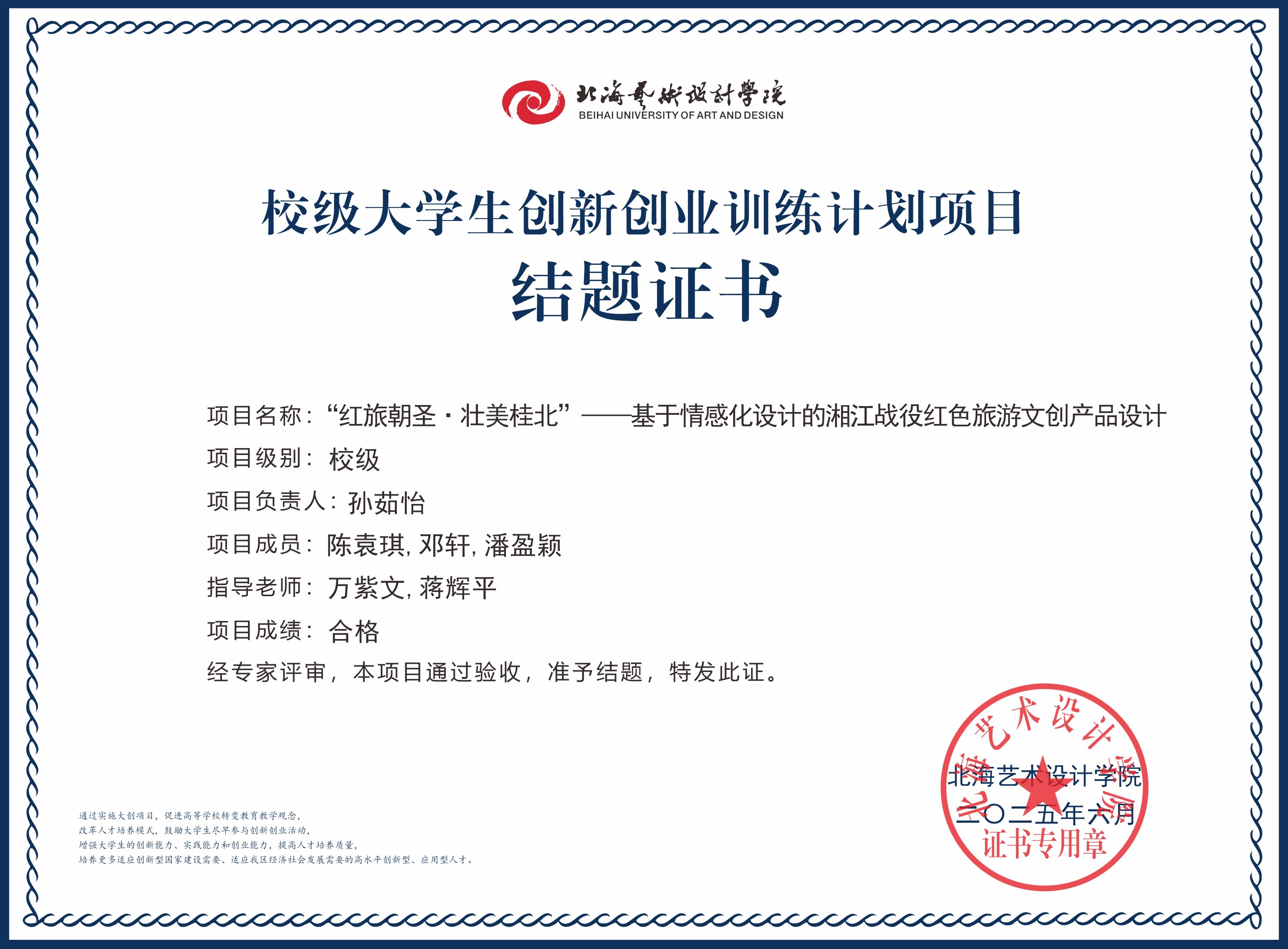2025年大创项目结题证书(校级)