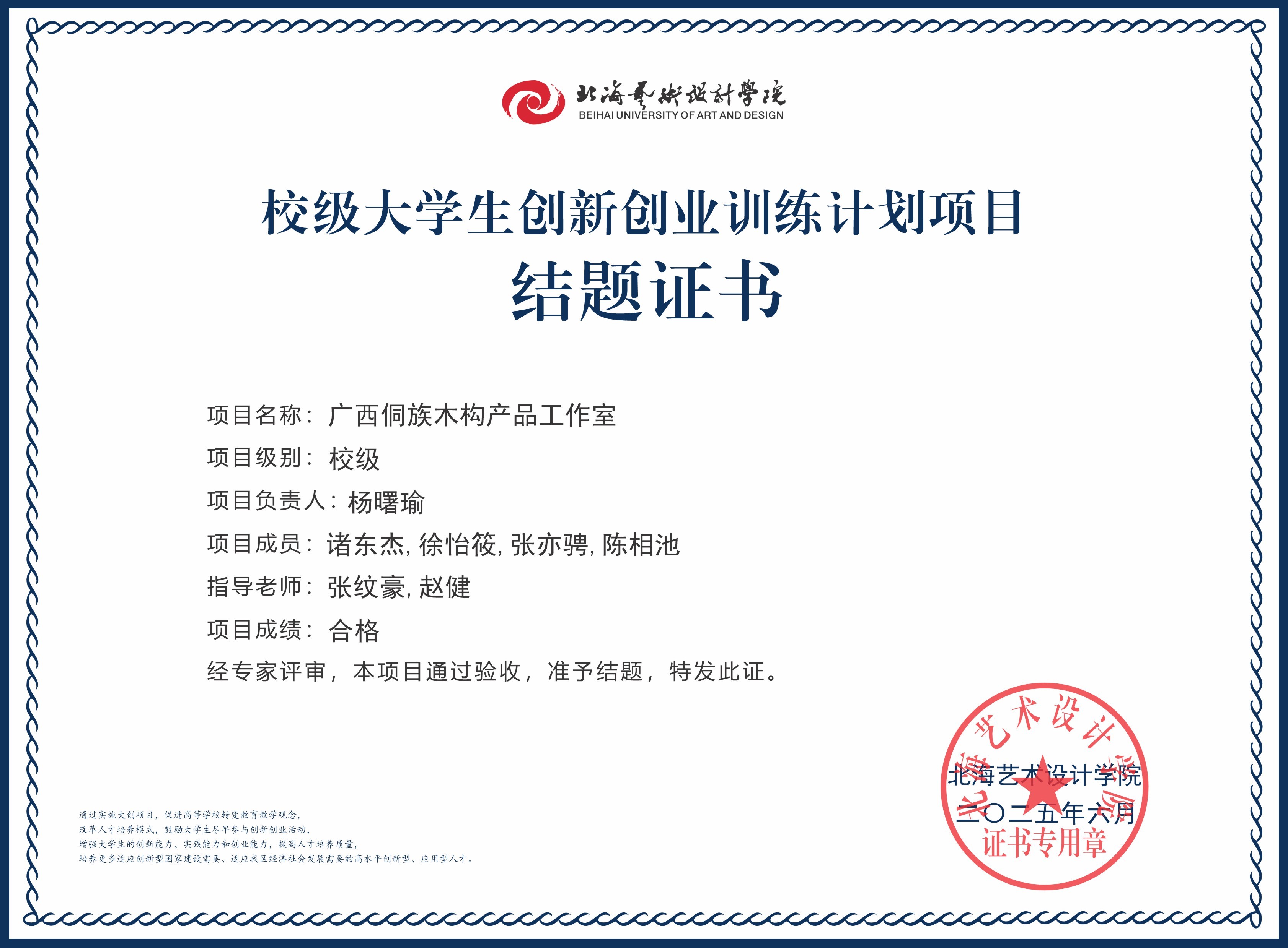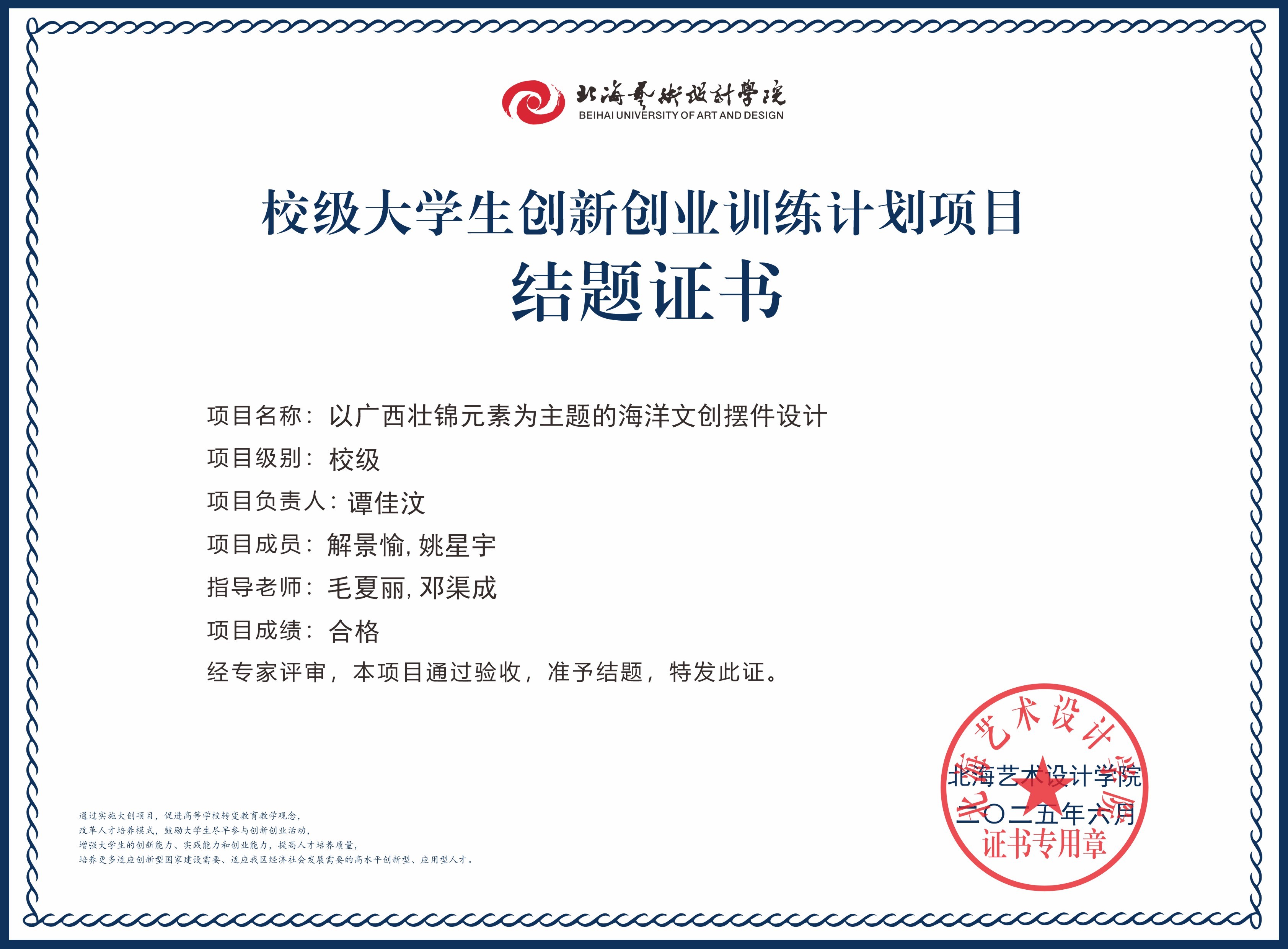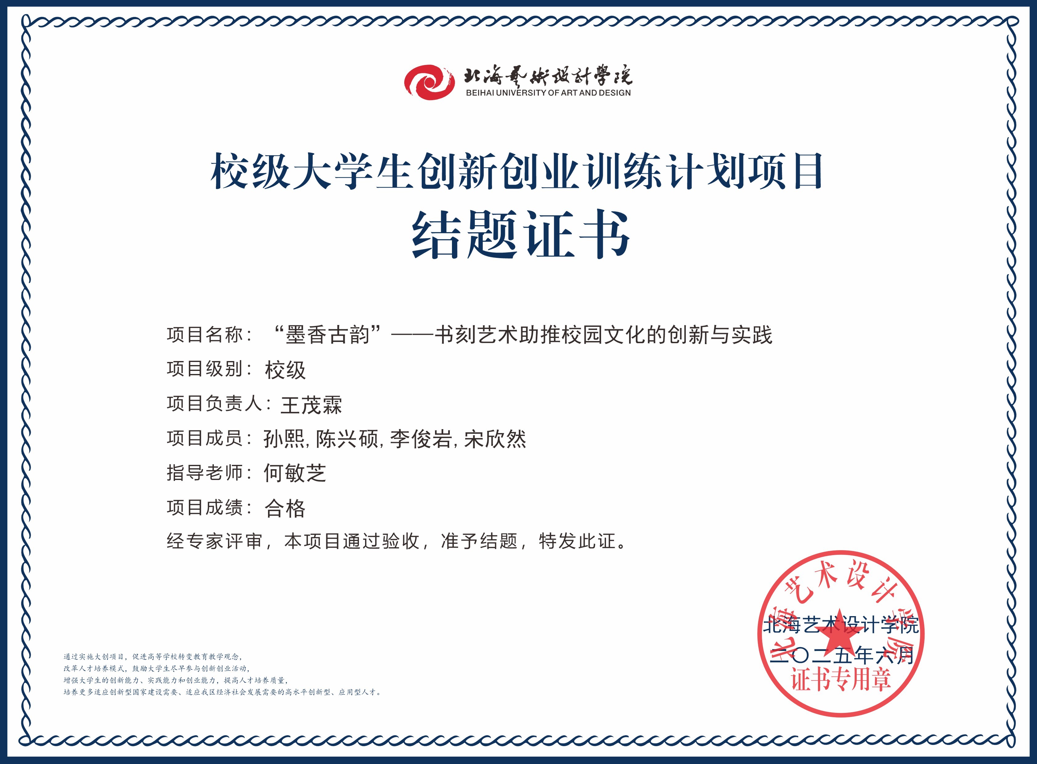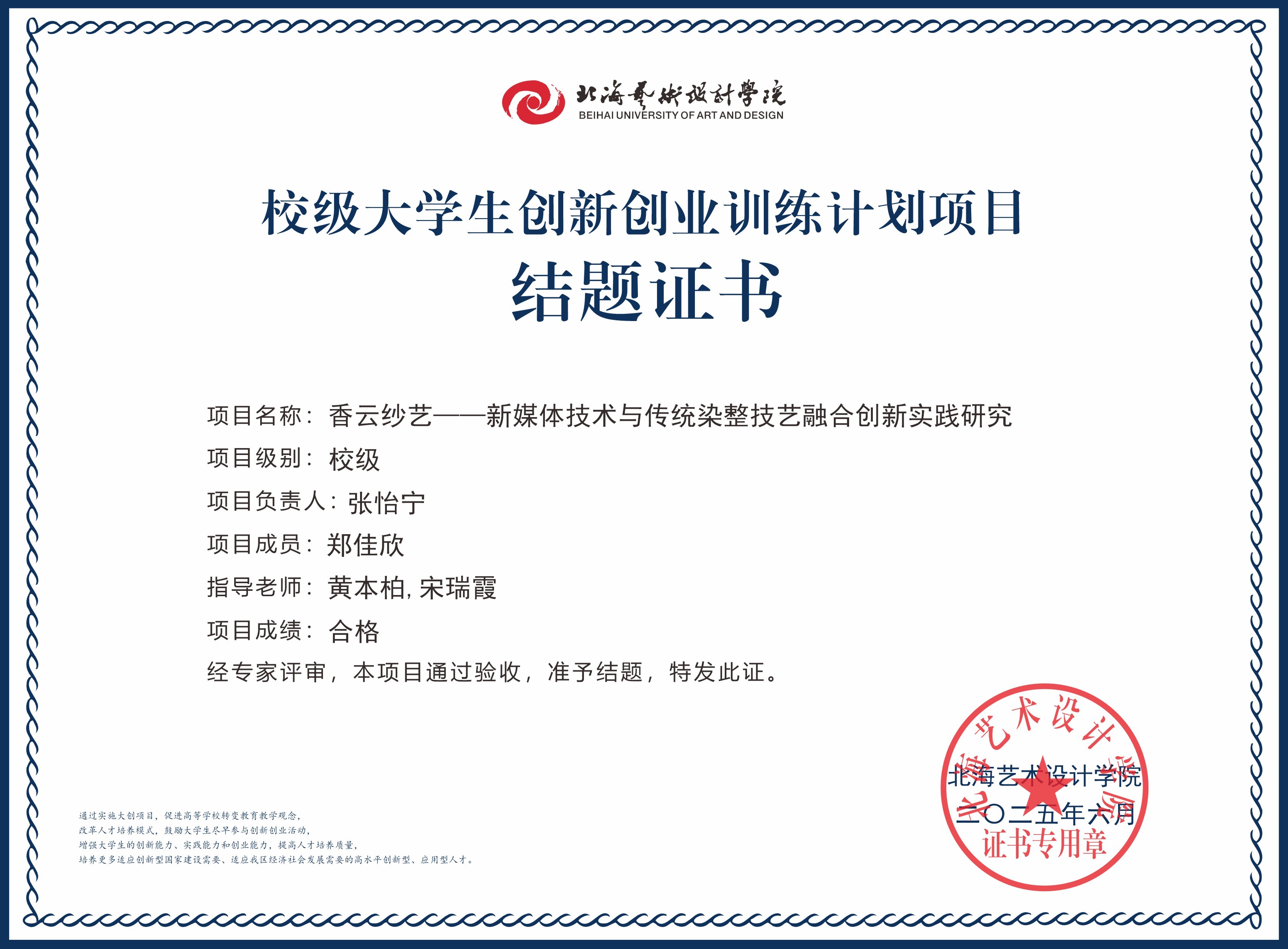 2025年大创项目结题证书(校级)
