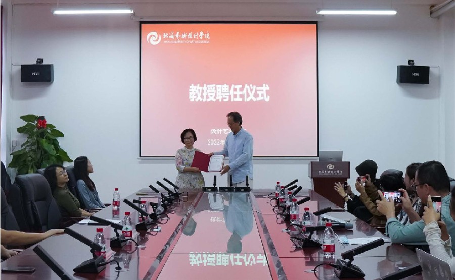 10月11日下午,北海艺术设计学院在西校区图书馆五楼会议室举行外聘教授聘任仪式。校长卢新华参加了颁发仪式,并为受聘教授颁发聘书。设计艺术学院副院长赵明主持,人事处副处长胡,设计艺术学院院长李林平、副院长白建强、设计艺术学院服装设计教研室副主任廖汀、副主任郭单园、设计艺术学院实验室副主任江柳清以及服装设计教研室全体教职工出席聘任仪式。