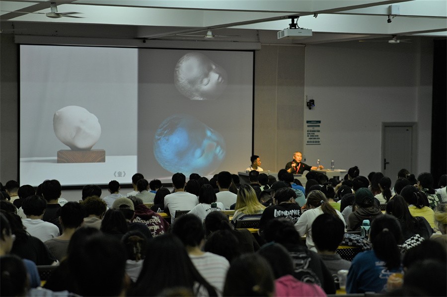 王少军教授通过展示他个人的一系列雕塑作品,讲述作品创作过程中的心路历程及作品对自身发展的影响,从而深入探讨雕塑艺术,说明具象写实雕塑的作用和意义。王少军教授表示写实艺术永远具有生命力,存在于人类社会的需求之中,他在此基础上尝试不断创新和探索,从中找出更新的意义,进而奠定了“角儿”这一艺术观念的基础。在雕塑技艺的基础分享上,他鼓励大家要脱离雕像写实的功能,用雕塑的语言超越现实的边界,将雕塑的灵魂可视化。
