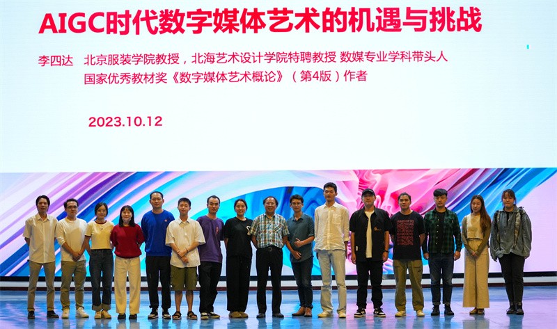 10月12日19:30,北海艺术设计学院动画与传媒学院数字媒体艺术专业带头人李四达应邀为动画与传媒学院师生作了题为《AIGC时代媒体艺术的机遇与挑战》的学术讲座。400余人到场聆听。讲座由李宗毅老师主持。