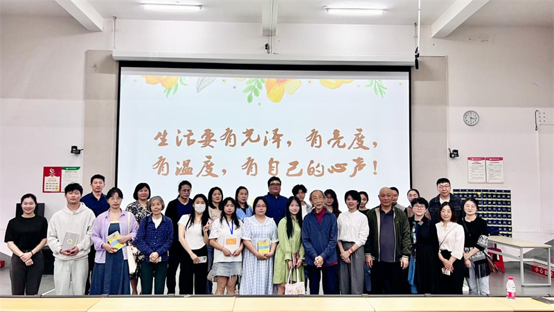 最后,讲座在现场热烈的掌声中落下帷幕。这场讲座不仅让学生们感受到李教授对法国文学的热爱和执着,更让他们对文学翻译有了更深入的认识和理解。讲座结束后,李教授将自己的著作赠送给讲座现场参与互动的学生,并与听讲座的师生合影留念。