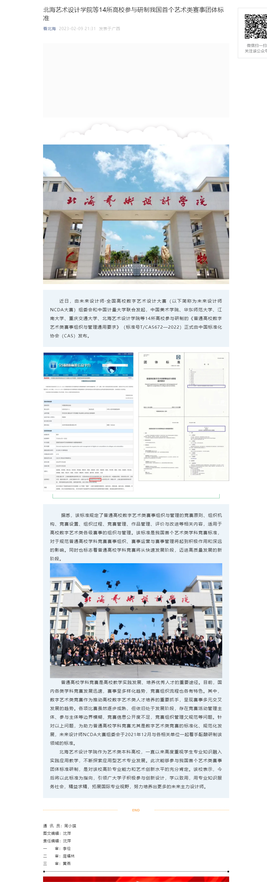 北海广播电视台:北海艺术设计学院等14所高校参与研制我国首个艺术类赛事团体标准