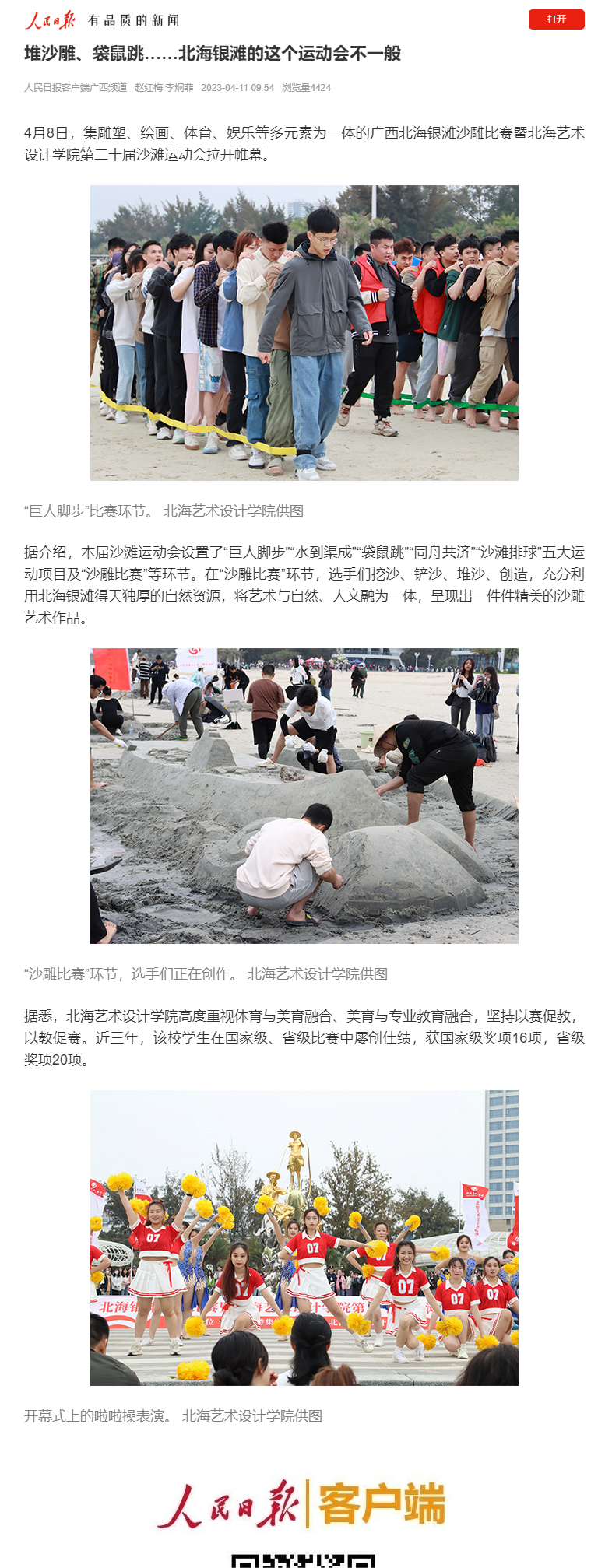 人民网:北海银滩沙雕比赛暨北海艺术设计学院沙滩运动会开幕
