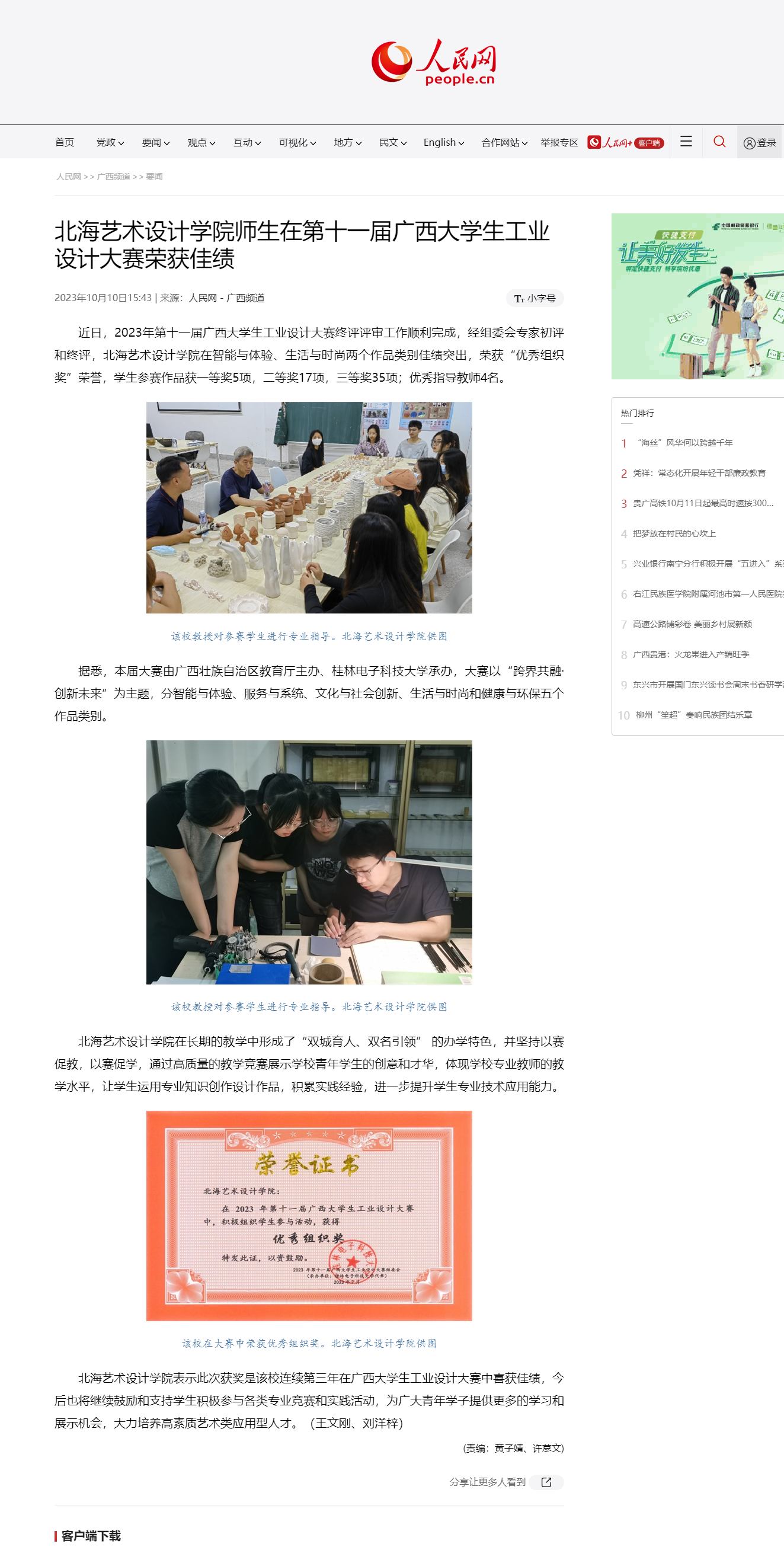 人民网:北海艺术设计学院师生在第十一届广西大学生工业设计大赛荣获佳绩