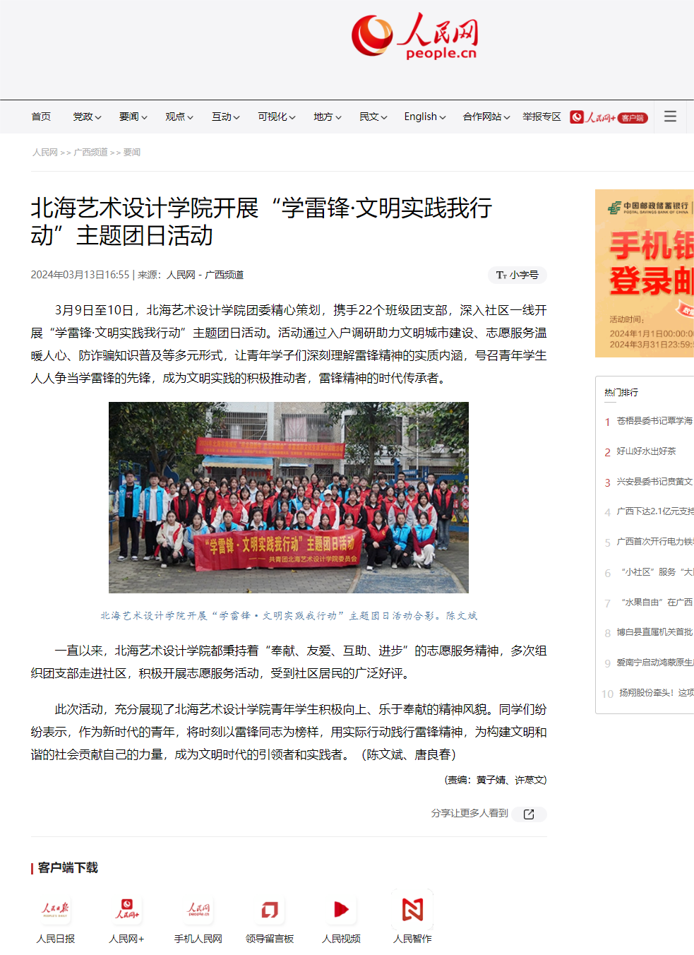 人民网:北海艺术设计学院开展“学雷锋·文明实践我行动”主题团日活动