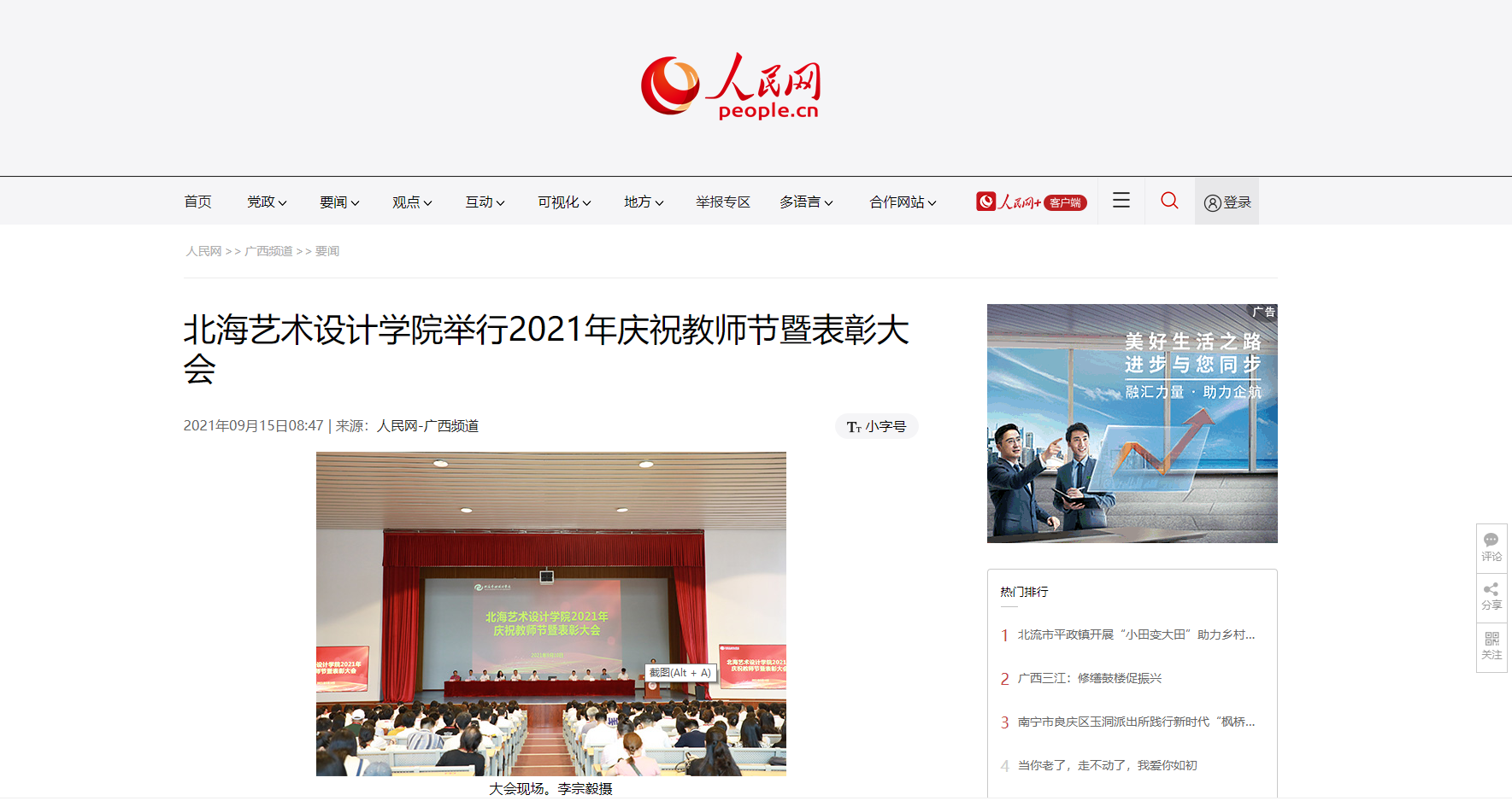 人民网:北海艺术设计学院举行的2021年庆祝教师节暨表彰大会
