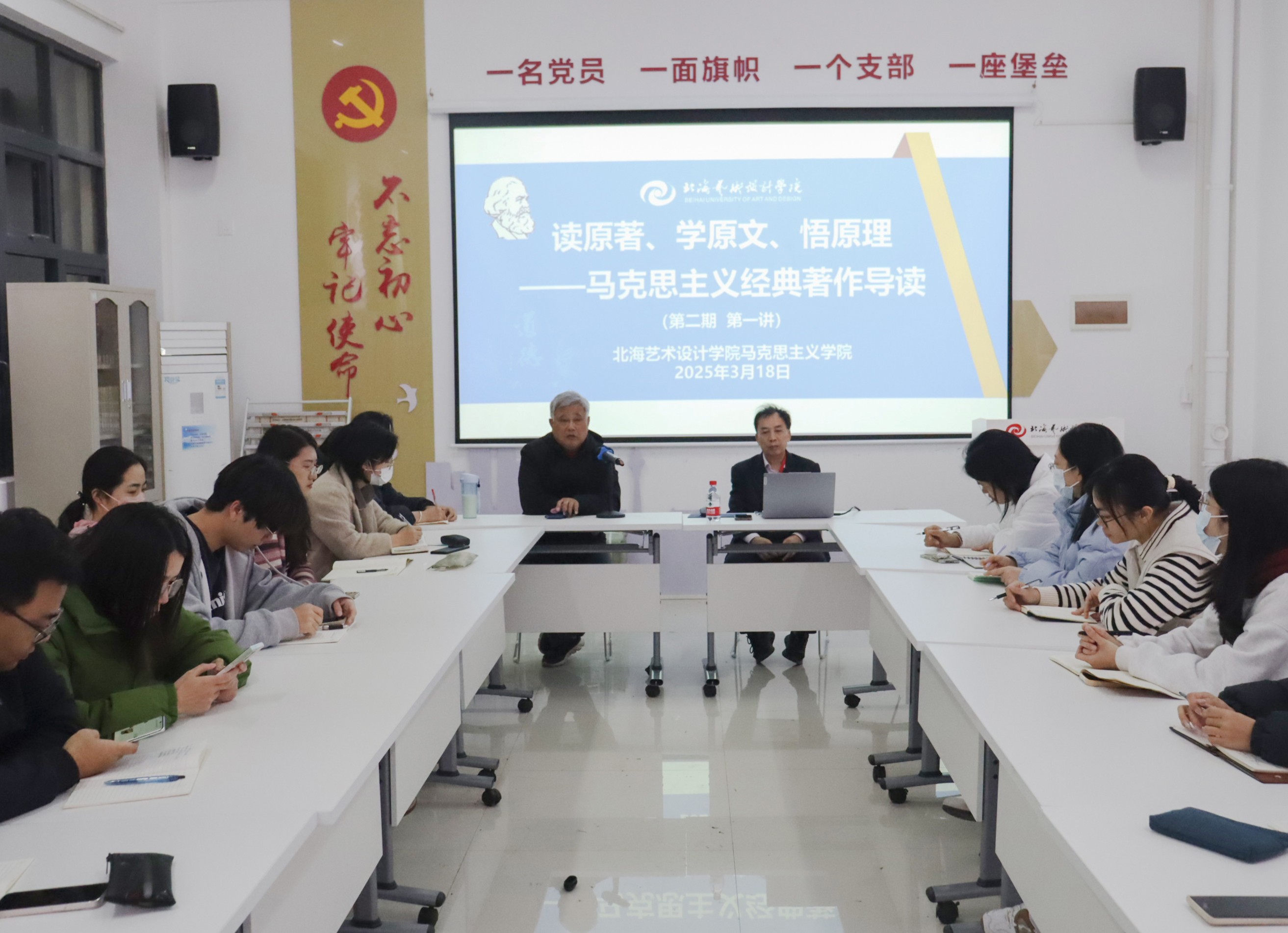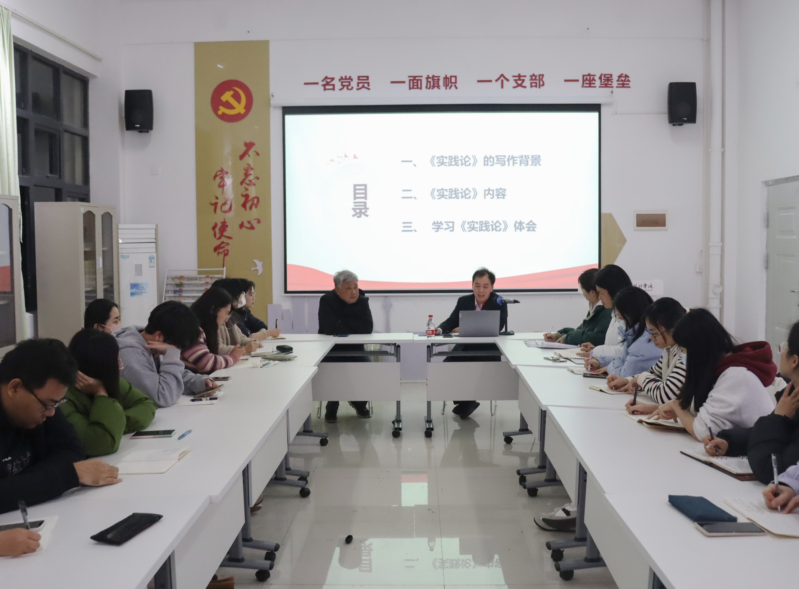 3月18日晚上19:30,马克思主义经典著作导读系列活动第二期首讲在西校区行政楼103重磅来袭,活动由我院院长姜献生主持,潘冬根副教授主讲《实践论》,学院全体中青年教师参加。