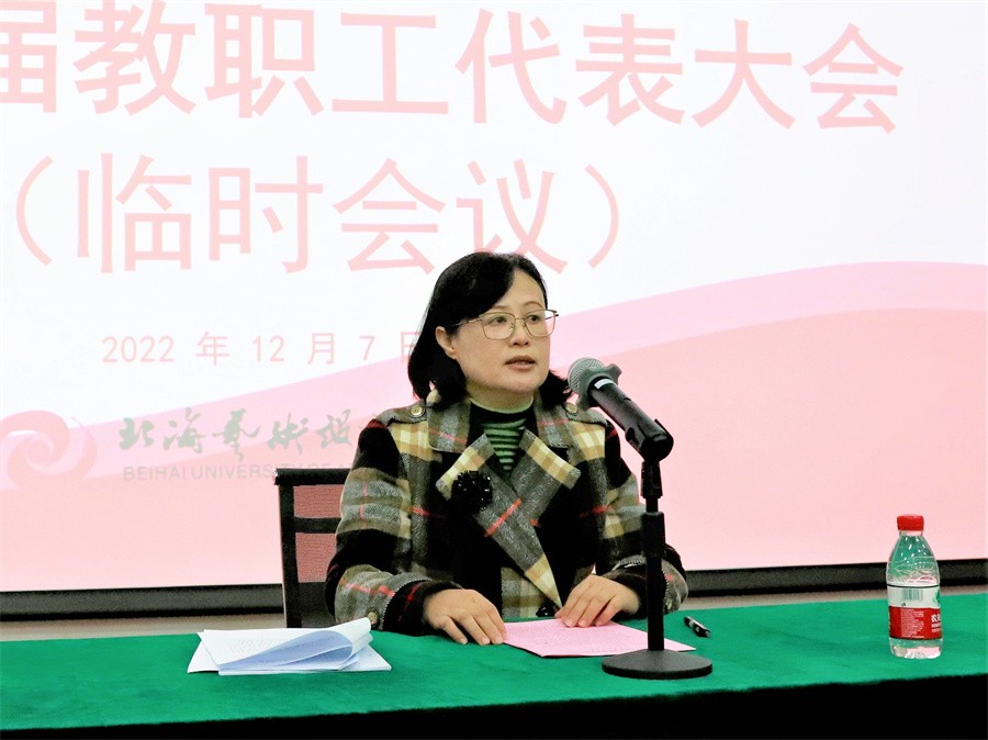 校长卢新华作《北海艺术设计学院关于选择登记为非营利性民办学校的说明》的报告,介绍了国家对民办教育实行分类管理的办法和要求,以及非营利性与营利性办学的主要区别;通报了学校选择登记工作的过程和进展情况;报告了学校举办者和董事会的选择结果;说明了学校选择登记为“非营利性民办学校”的原因。他强调学校非营利性办学的选择关系到学校发展前途和全体教职工的利益,事关重大。教代会代表要从学校长远发展考虑,以主人翁姿态,支持学校举办者和董事会的选择决议,为学校发展做出正确选择,助力学校开创跨越式高质量发展新局面。