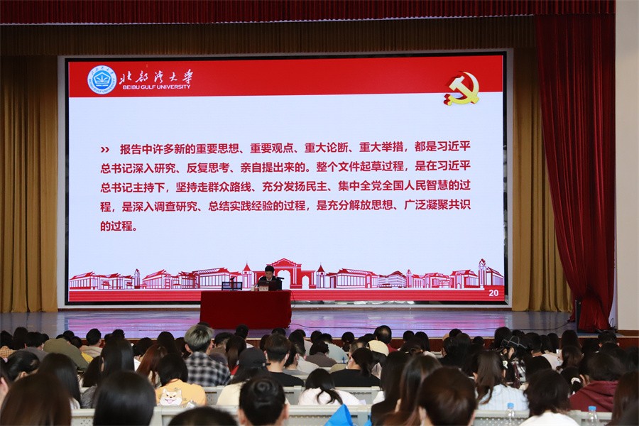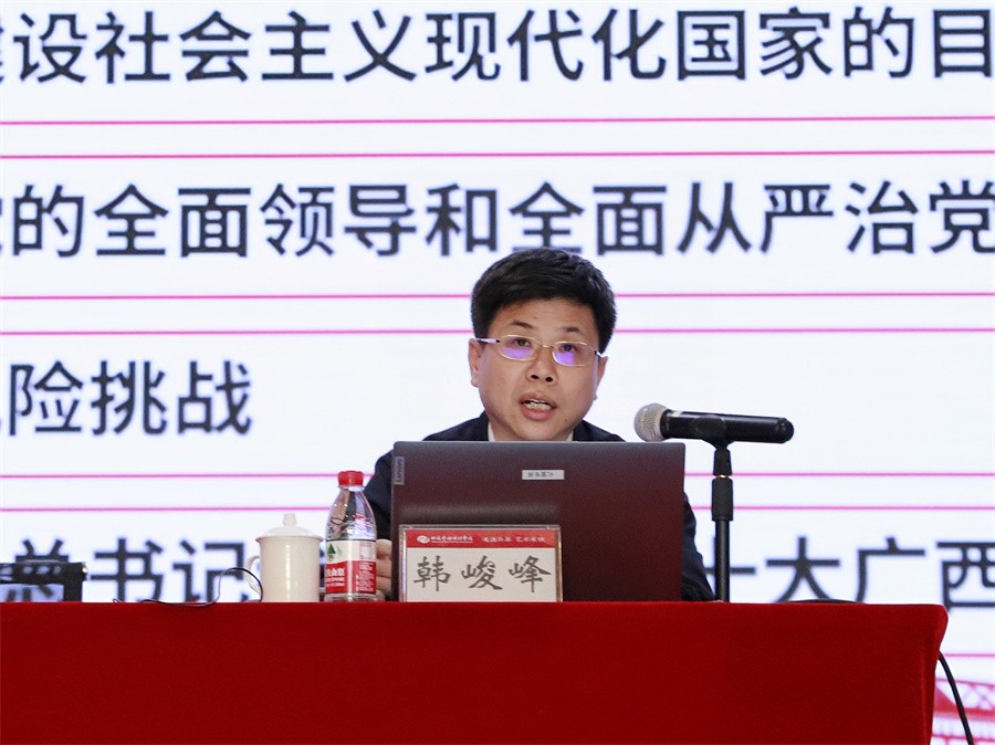 自治区党委教育工委宣讲团成员、北部湾大学党委书记韩峻峰作党的二十大精神宣讲报告会