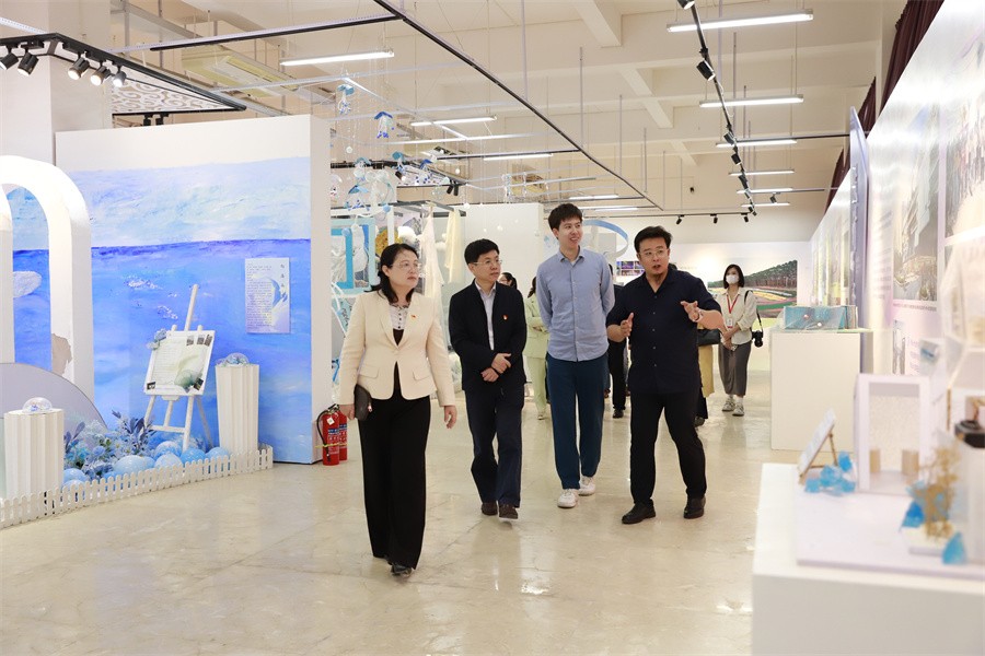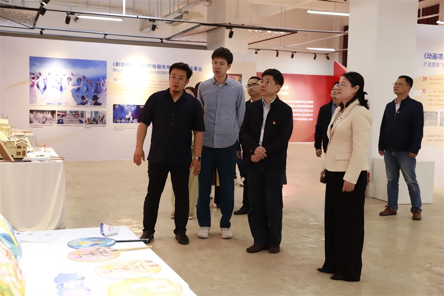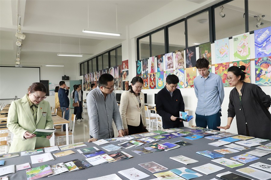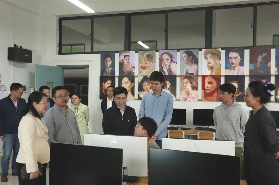 座谈会前,韩峻峰一行在我校党委书记张阳及相关领导的陪同下参观学校艺术楼、“校政企行深度融合服务地方经济发展”展厅。(周小琪/摄)