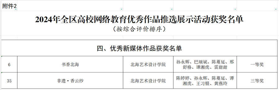 近日,自治区教育厅、自治区党委网信办公布了第十届全区大学生网络文化节和2024年全区高校网络教育优秀作品推选展示活动获奖名单,我校共有8项作品获奖,其中动画短片作品一等奖1项,二等奖1项;优秀新媒体作品一等奖1项,三等奖1项;微视频作品二等奖2项;微电影作品三等奖1项;音频作品三等奖1项。