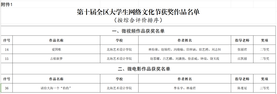 第十届全区大学生网络文化节获奖作品名单