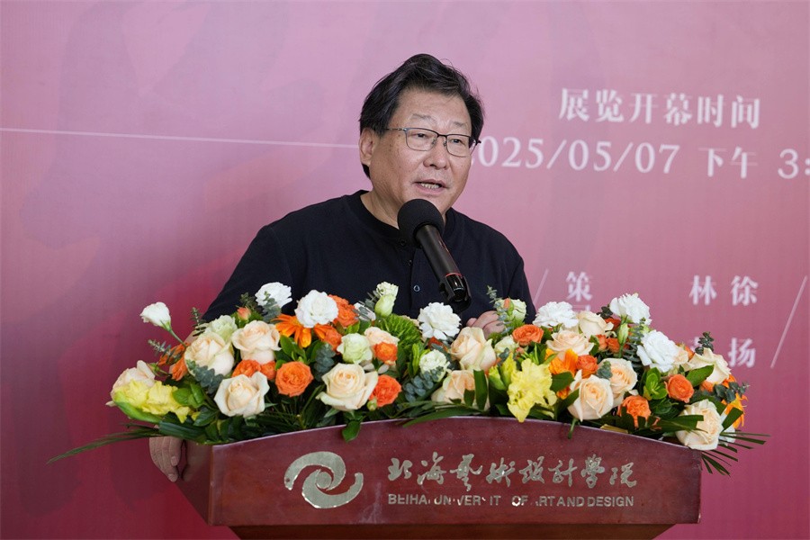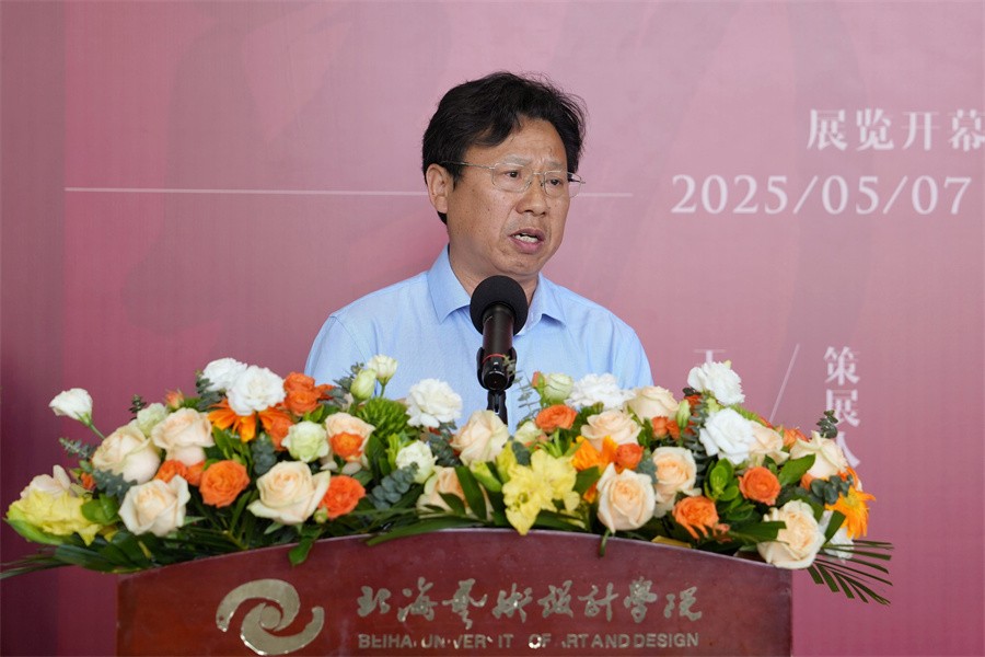 2025年5月7日,由中央美术学院主办,中央美术学院关心下一代工作委员会、离退休工作处承办,北海艺术设计学院协办的2025“老先生 新时代”作品巡展开幕式在我校艺德楼举行。中央美术学院校长助理潘承辉,参展艺术家代表中央美术学院高天雄教授、李洋教授,中央美术学院离退休人员党总支副书记卢冬冬,北海艺术设计学院校长卢新华,常务副校长胡胜,副校长陶立阳,美术学院院长刘斌、执行院长龚为等出席了开幕式。开幕式由北海艺术设计学院党委副书记陈毅华主持。