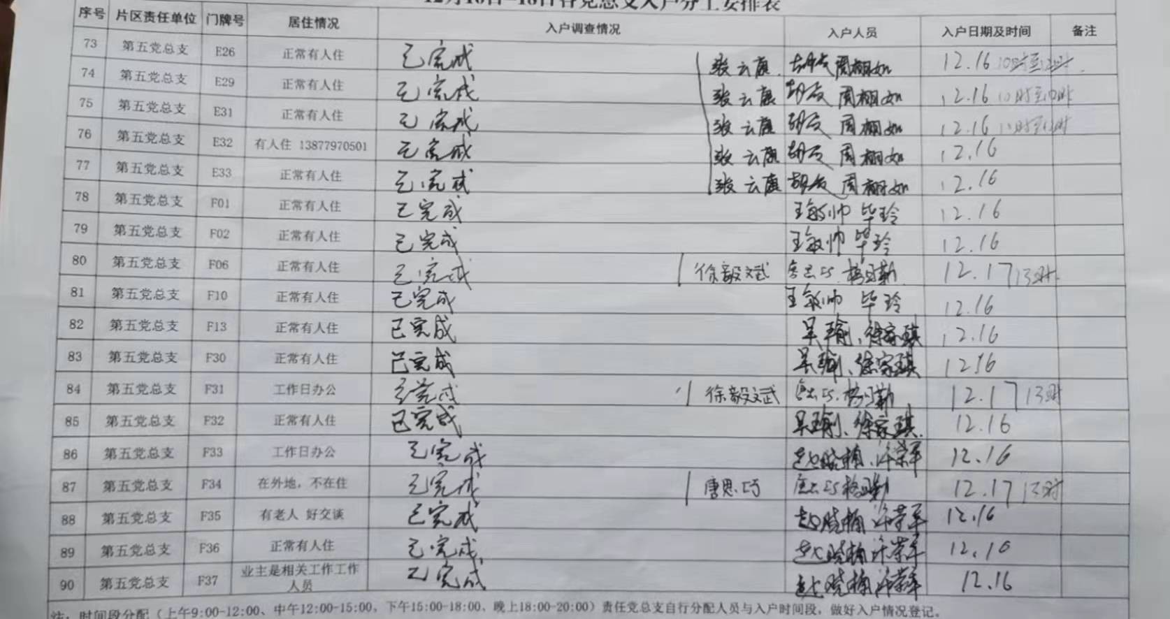 第五党总支关于入户情况报告