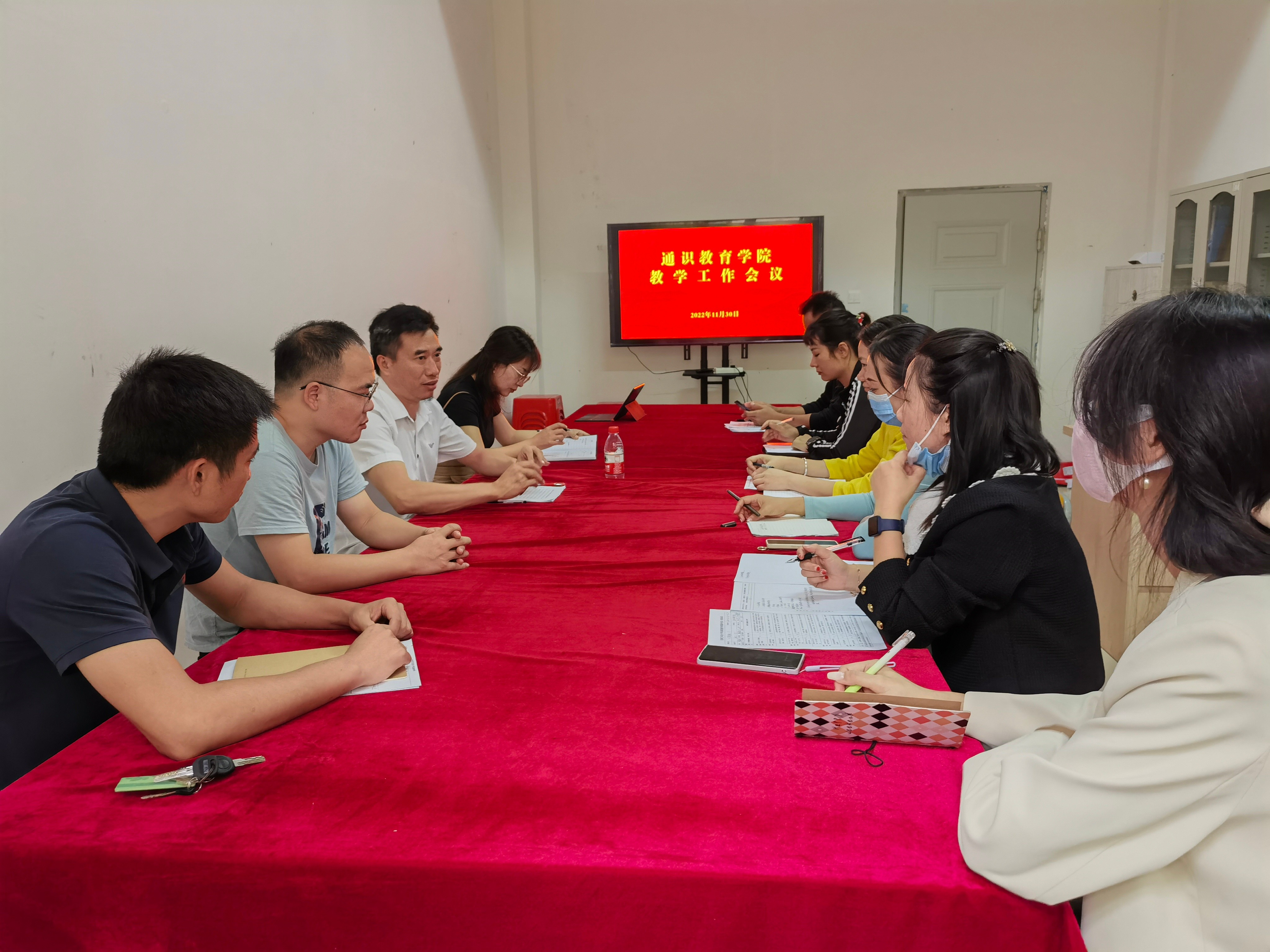 为进一步推进教学管理规范化,不断提高管理质量,2022年11月30日,我院在行政楼210会议室召开通识教育学院教学工作会议。会议由通识教育学院院长杨莹主持,副校长陶立阳、通识教育学院副院长黄丹、综合办及各教研室主任、副主任参加了会议。