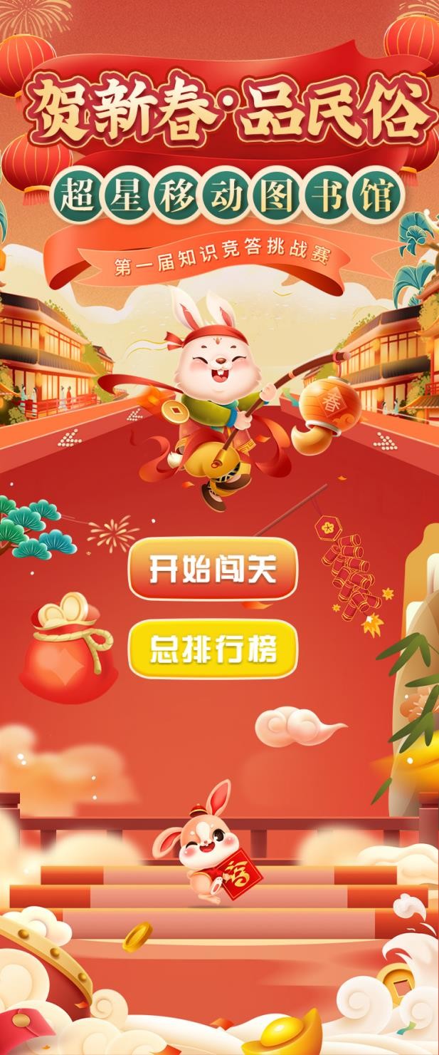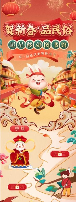 值此新春佳节之际,我馆特组织广大师生参加“贺新春品民俗”超星移动图书馆知识竞答挑战赛,欢迎大家积极参与,让我们一起感受浓厚的新春佳节氛围吧!
