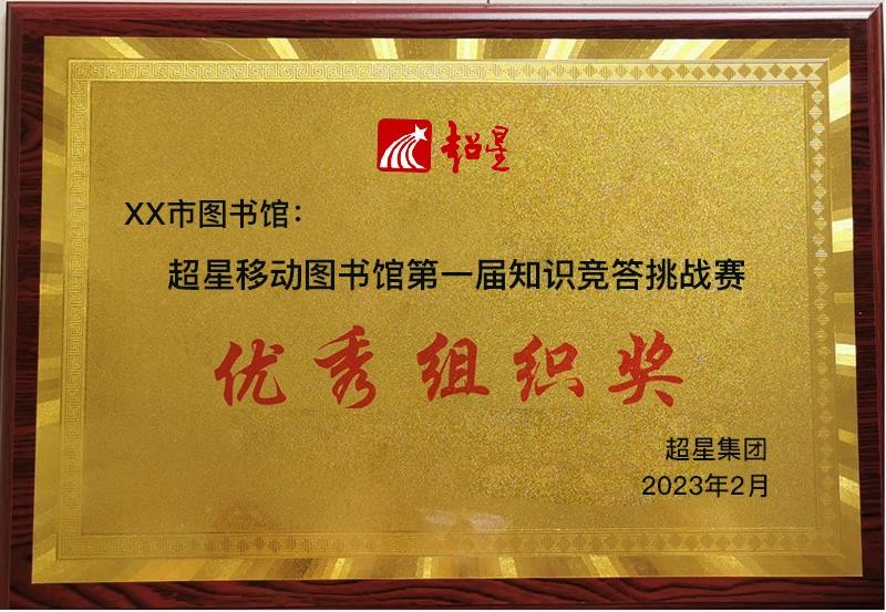 单位组织奖(50名)(根据单位参与人数进行评选,仅限移动图书馆正式合作用户):奖牌大概效果如下