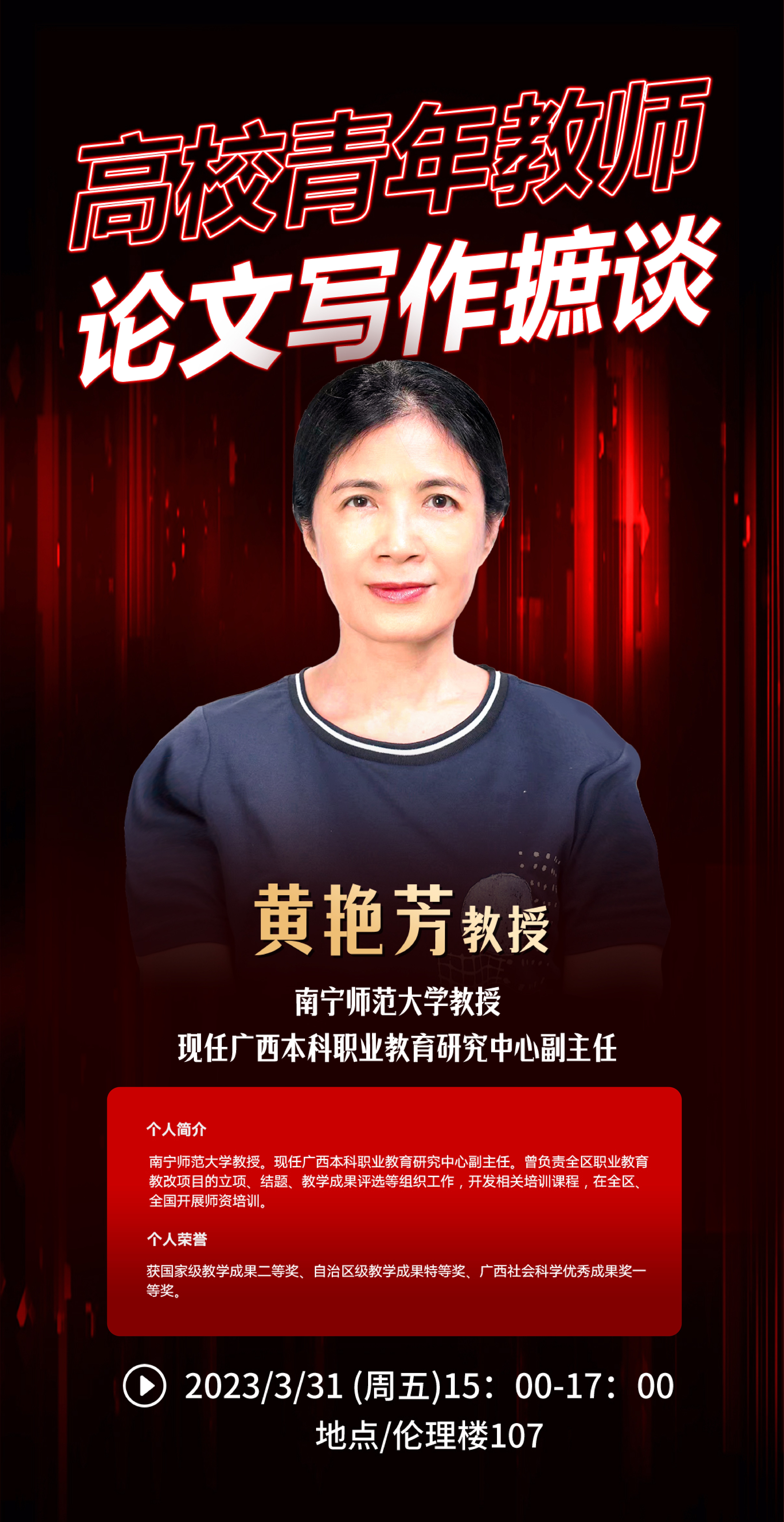 关于邀请黄艳芳教授开展《高校青年教师论文写作摭谈》讲座的通知