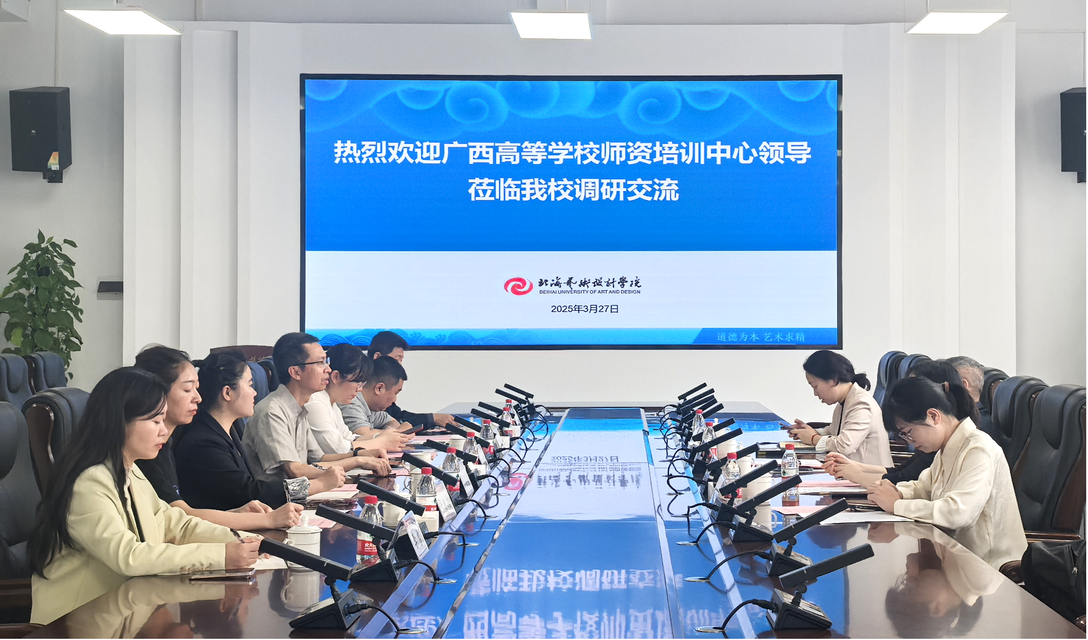 3月27日上午,广西高等学校师资培训中心专职副主任廖宏伟、副主任闫若婻、秘书廖薇、干事韦鉴玲莅临我校,就师资培训工作开展专题调研。我校分管副校长黄侃明、人事处处长屈志鑫、科长钟延明、科长李菁蔓,参培学员代表白建强、李雪共同参会,协同探索师资发展新路径。