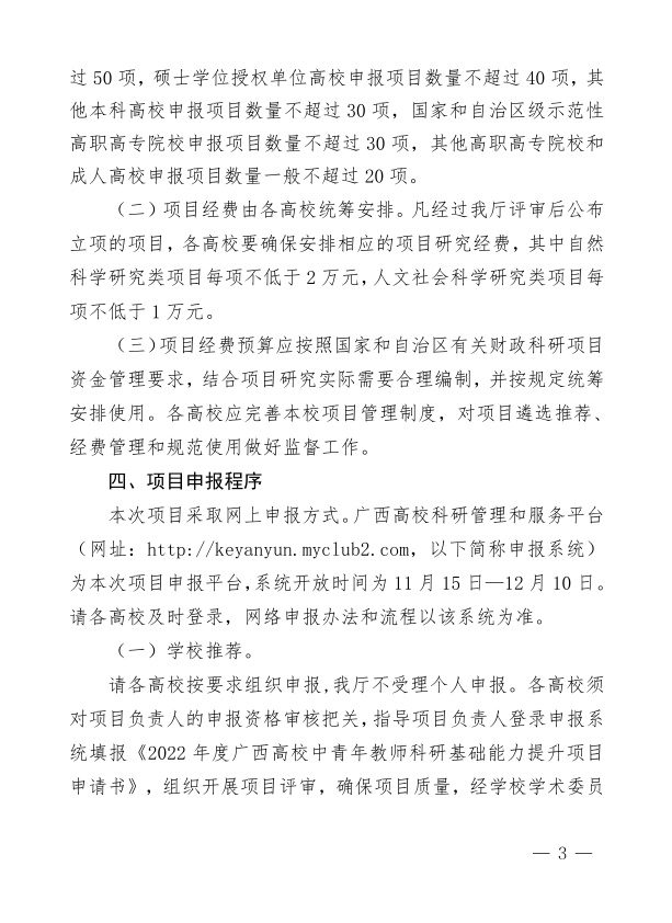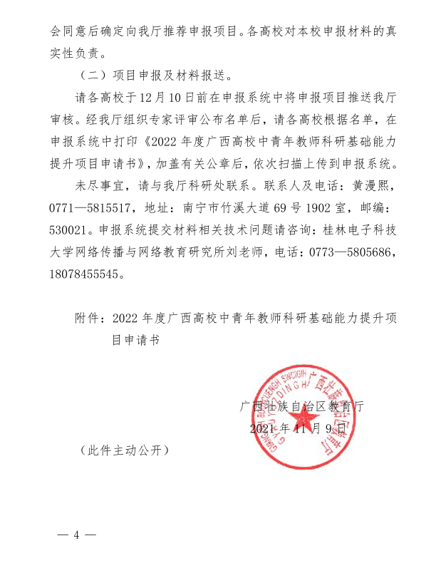自治区教育厅关于组织申报2022年度广西高校中青年教师科研基础能力提升项目的通知