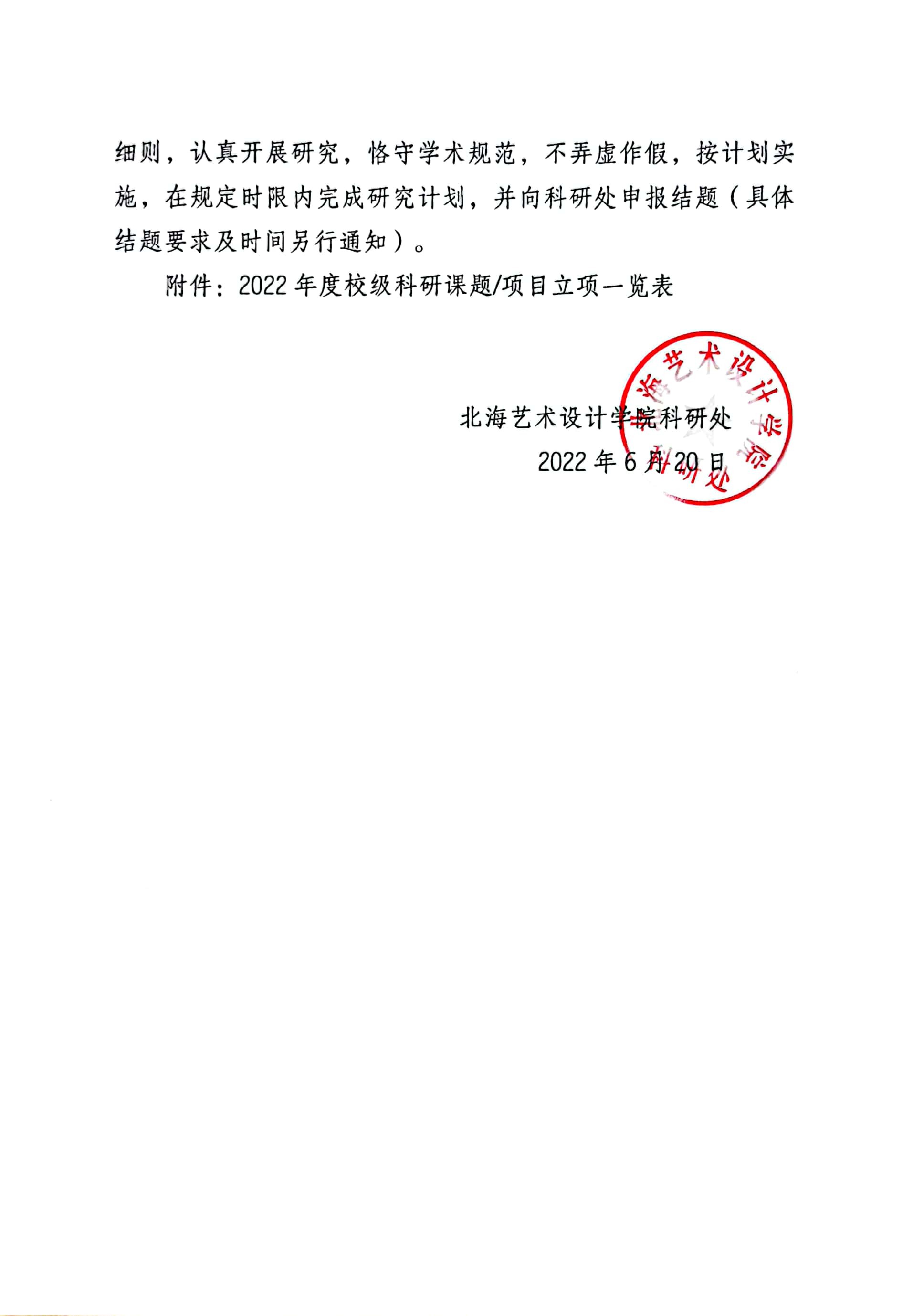北艺科研〔2022〕14号 关于公布2022年校级课题项目结题结果的通知