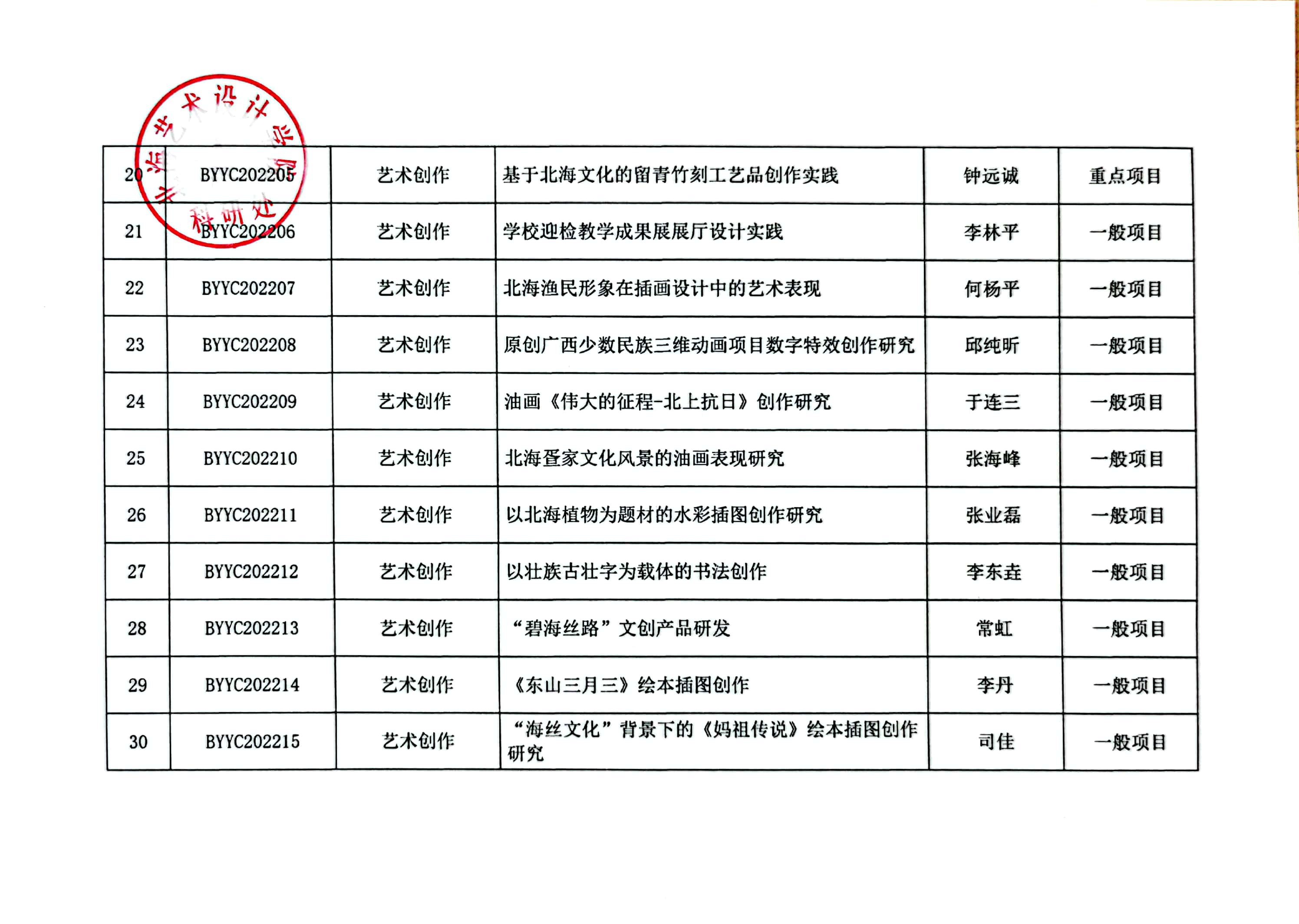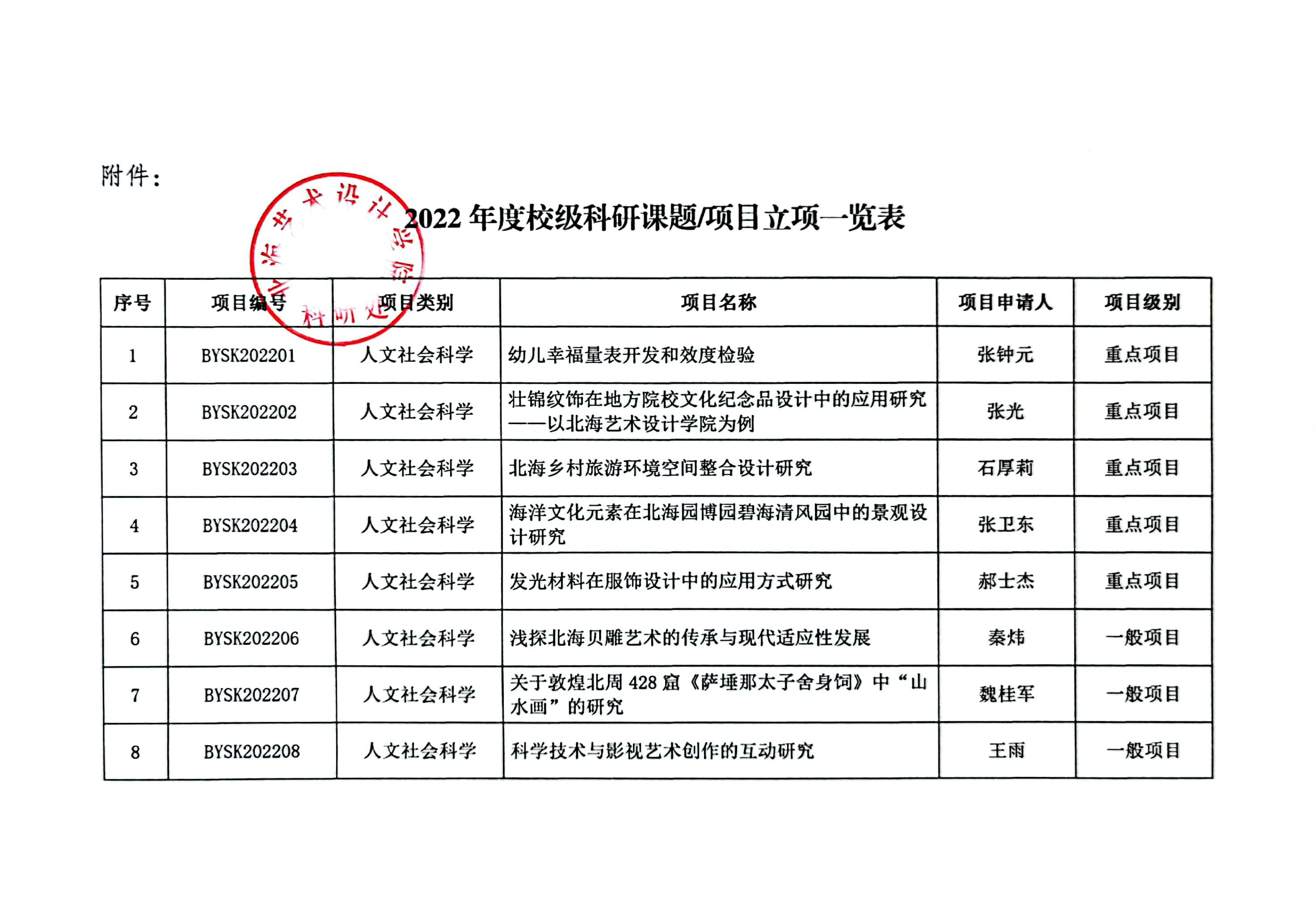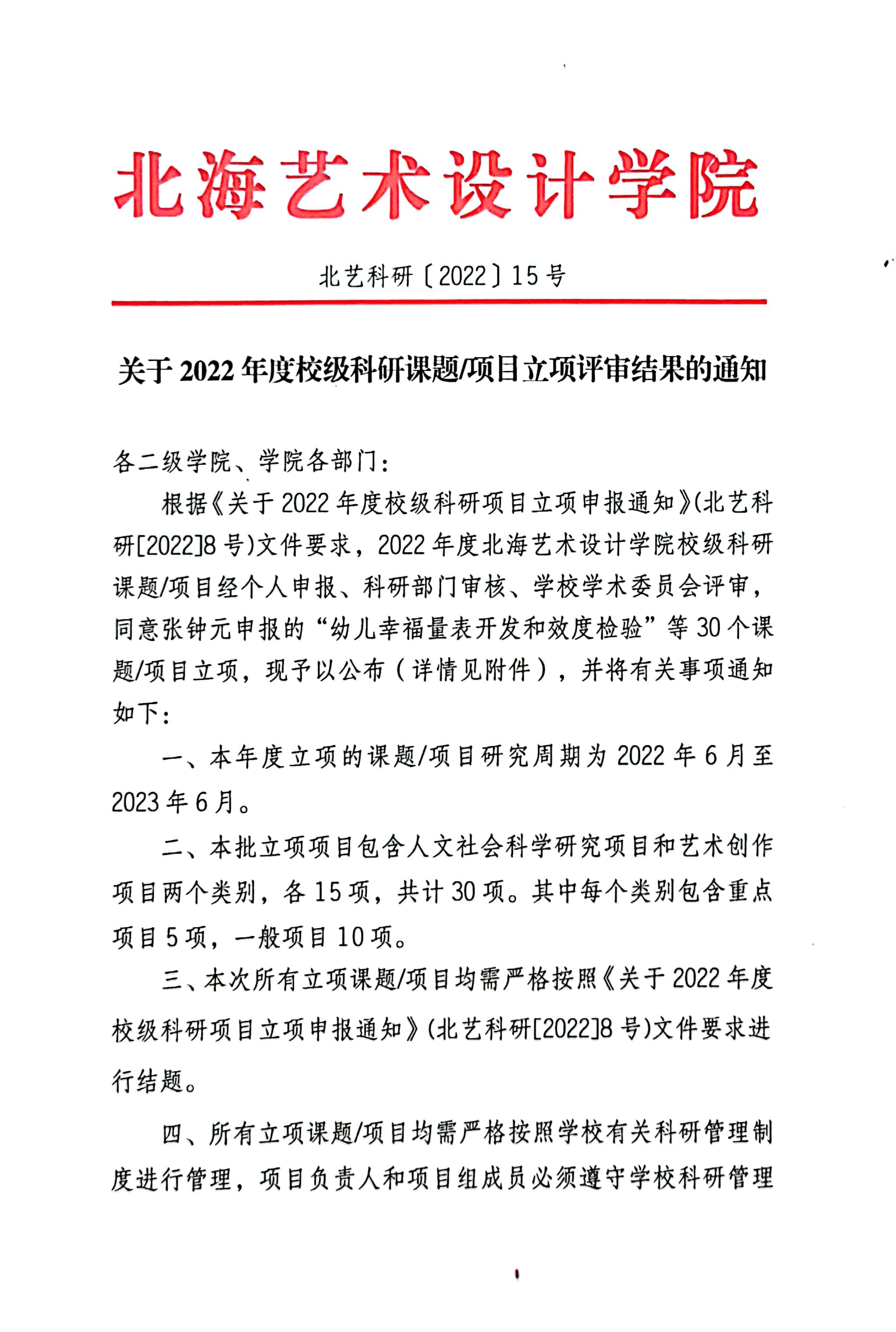 北艺科研〔2022〕15号 关于2022年度校级科研课题/项目立项评审结果的通知