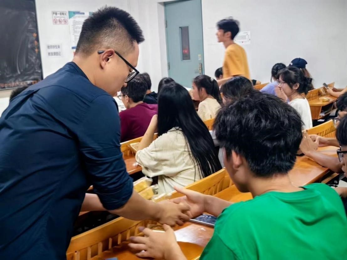 为使勤工俭学的同学们切实感受到节日氛围,体会到美术学院的人文关怀以及勤工俭学大家庭的温暖,四位美术学院领导教师为同学们派发月饼,再次送上节日祝福。(殷声 摄)