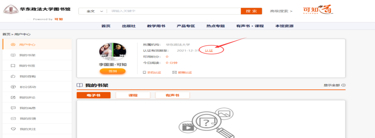 认证页面,请输入图书馆