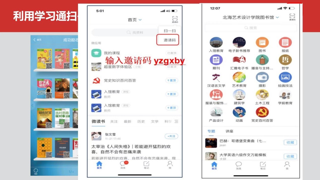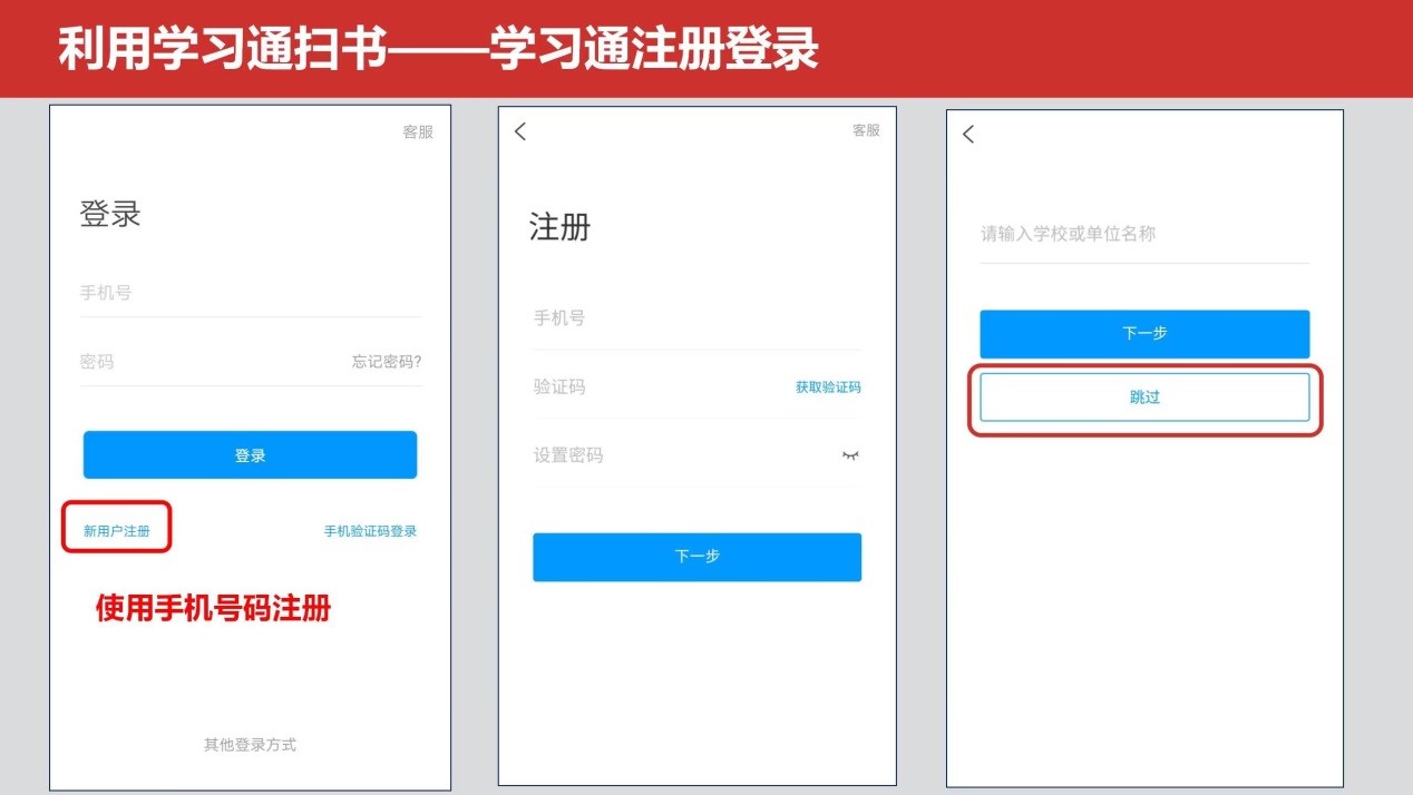 手机APP安装及使用流程:扫码下载 → 注册及登录 → 订阅课程