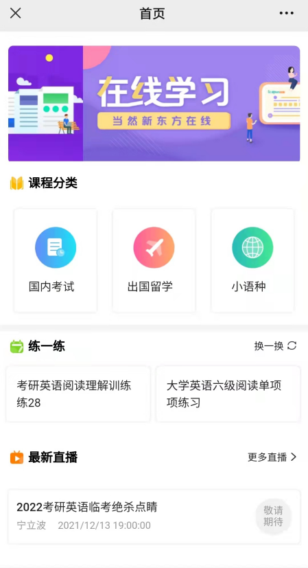 新东方在线微课堂学习平台 (vl.koolearn.com)是新东方在线对微学习、微课程的趋势研究出的一款以视频为核心资源的学习平台产品其定位为基于应用场景的语言应用百科。微课堂课程体系包括畅学口语、活学商务、乐学外语、语言应试、留学直通车、践行职场等资源。