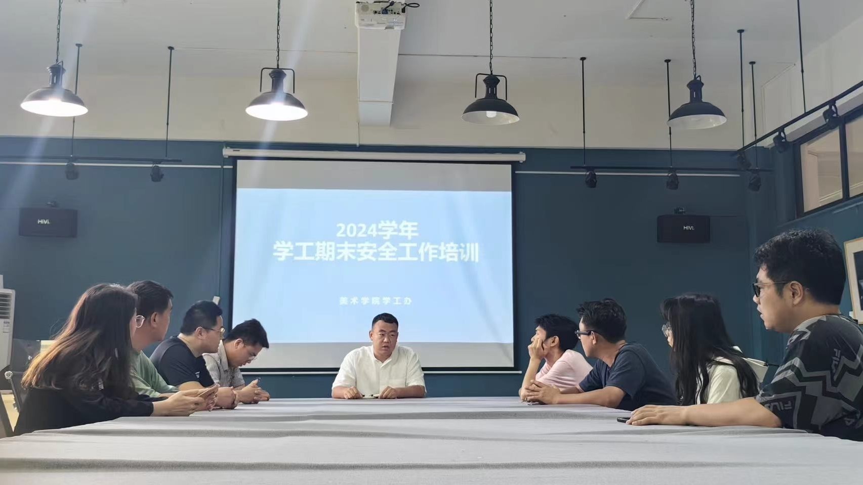 2024年 5月23日,美术学院学工办于艺术楼313对近期工作开展期末安全工作培训,美术学院第五党总支副书记鲁明阳及学工办全体成员参加会议。