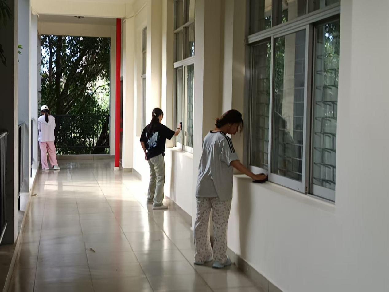 (志愿者们清洁教室)