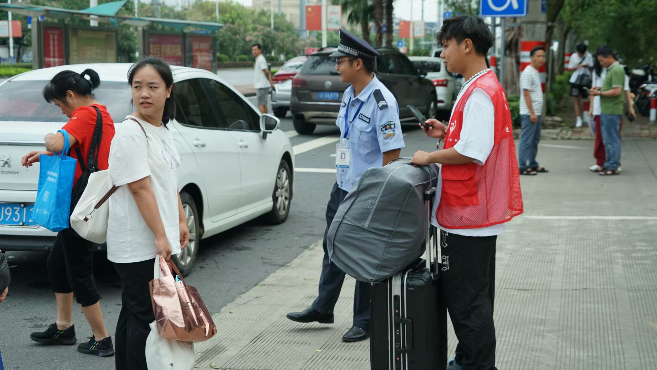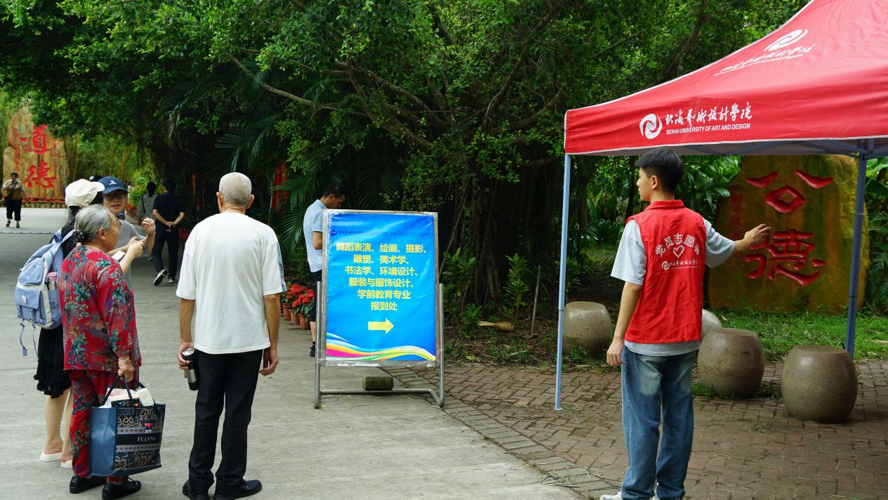 (志愿者在学校接待新生)