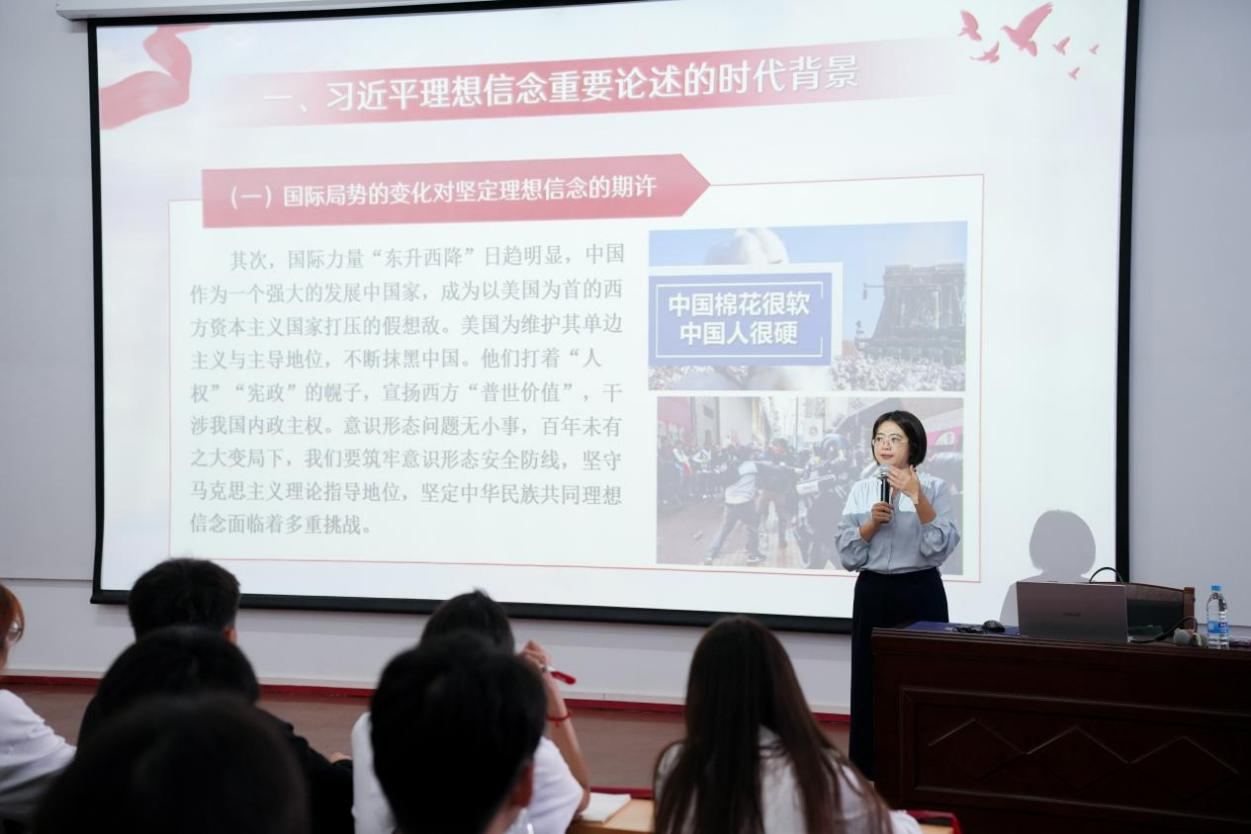 课程学习阶段邀请到了团委书记唐良春,学工部(处)长班媚,团委组织部部长王燕亭分别给同学们进行授课。课程内容丰富,包括从团员意识的内涵与实践路径切入,结合理想信念的坚守与践行,逐步深化对初心使命的责任担当以及由团中央出品的教学视频;通过明确新时代合格团员的标准,最终将“永远跟党走”的奋斗精神融入国家发展新征程的青春建功路径。