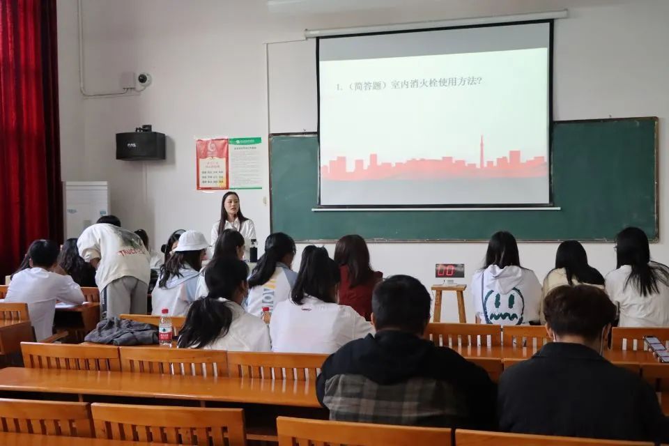 为构建和谐校园,进一步加大学校消防宣传力度,增强广大师生的消防安全意识、消防法制观念,营造人人参与消防,人人关心消防的良好氛围。于2021年11月14日在功德楼114教室举行了消防知识竞赛活动。比赛开始前,参赛选手在工作人员的引导下有序地签到并落座。在答题互动环节中,同学们热情高涨。