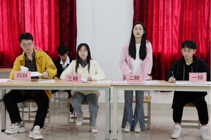 此次比赛分为立论质询、攻辩、 攻辩小结、自由辩论、总结陈词五个环节,共4组八支代表队伍参赛。