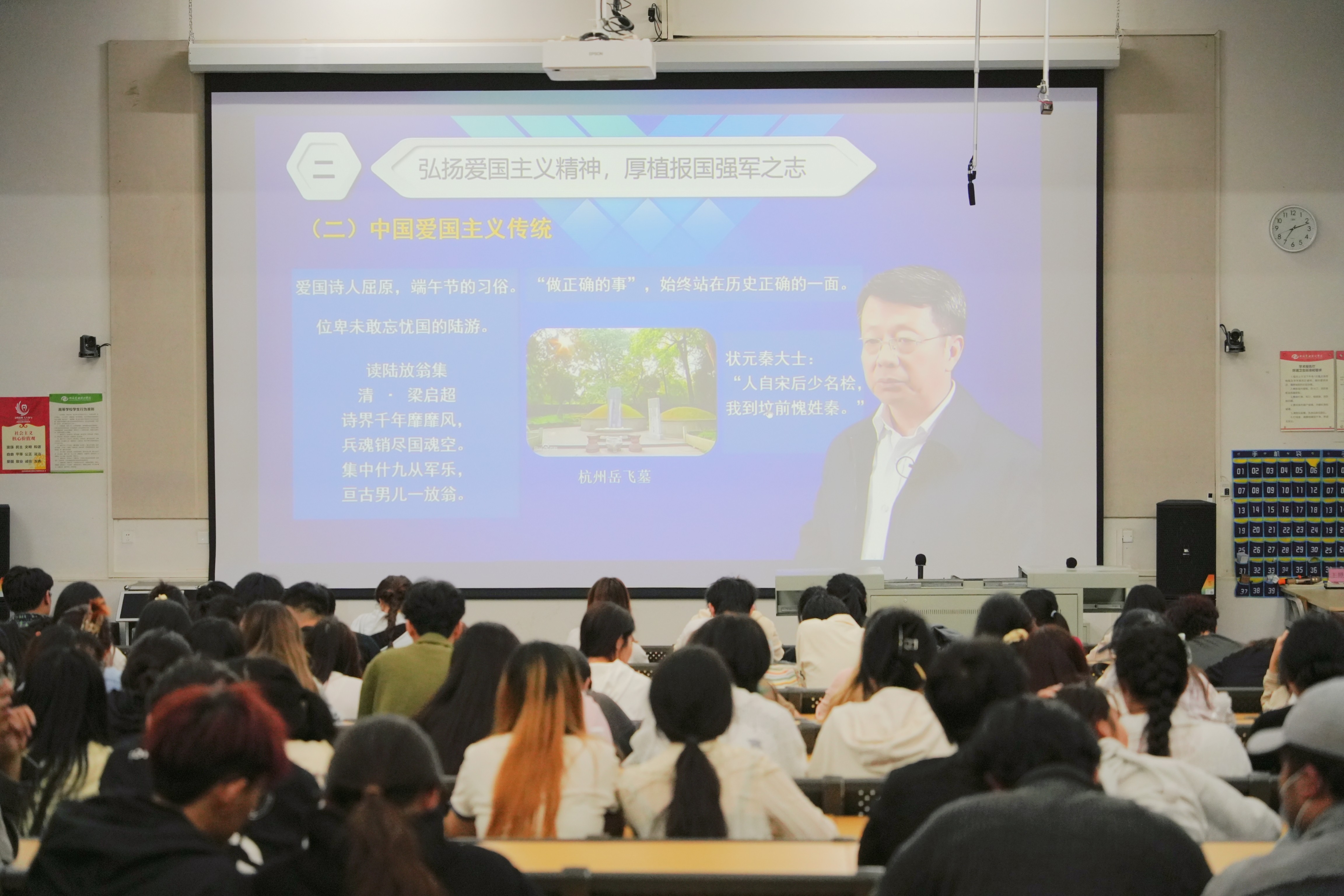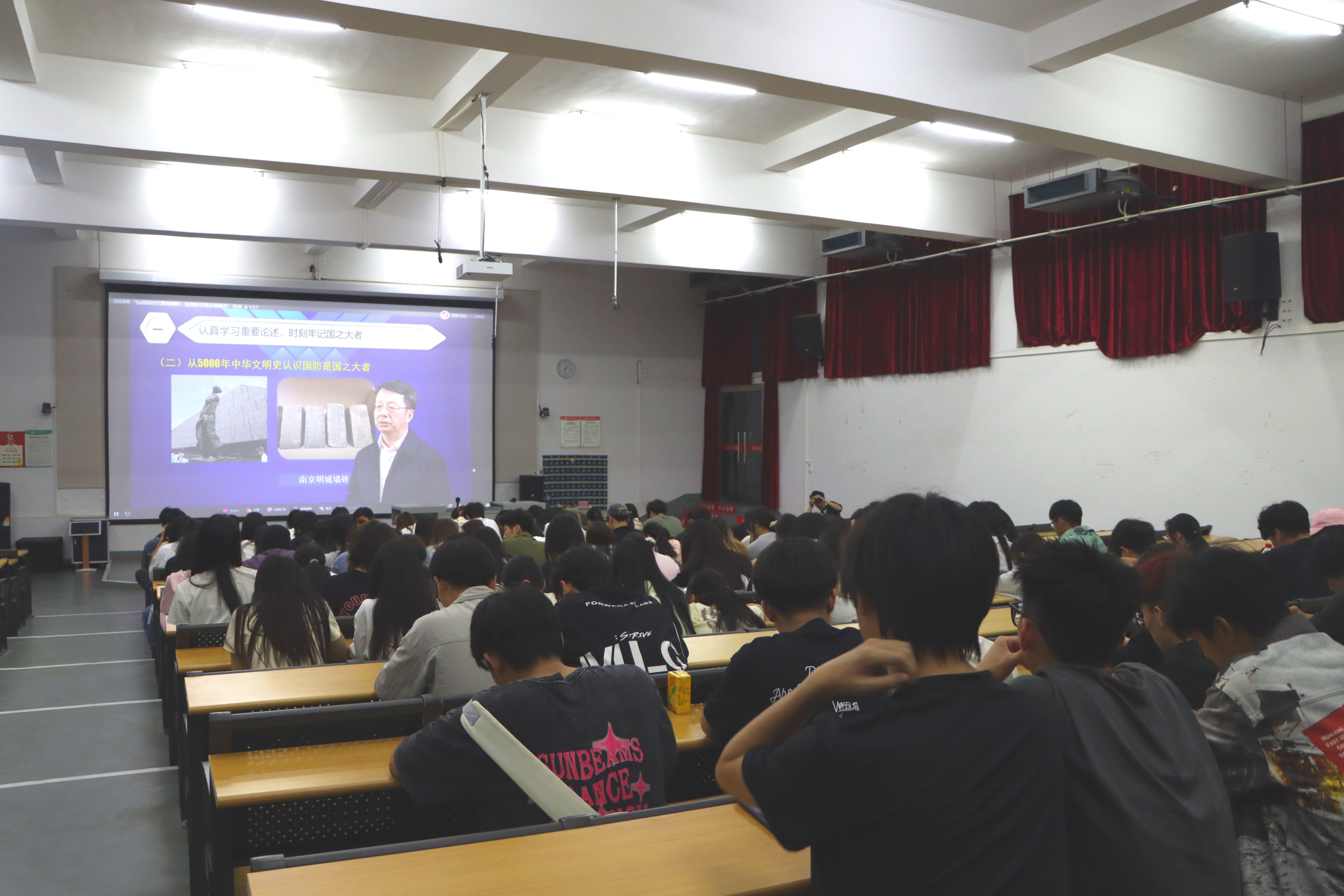 此次讲座观看的是由主讲人曹峰演讲的《加强新时代高校国防教育,为中国式现代化培养优秀建设者和勇敢保卫者》。讲座采取抖音线上直播,以“弘扬新时代雷锋精神,投身新征程志愿服务”为主题,从“雷锋故事”“雷锋解读”“思政教育”“志愿服务”等角度切入,开展主题讲座。