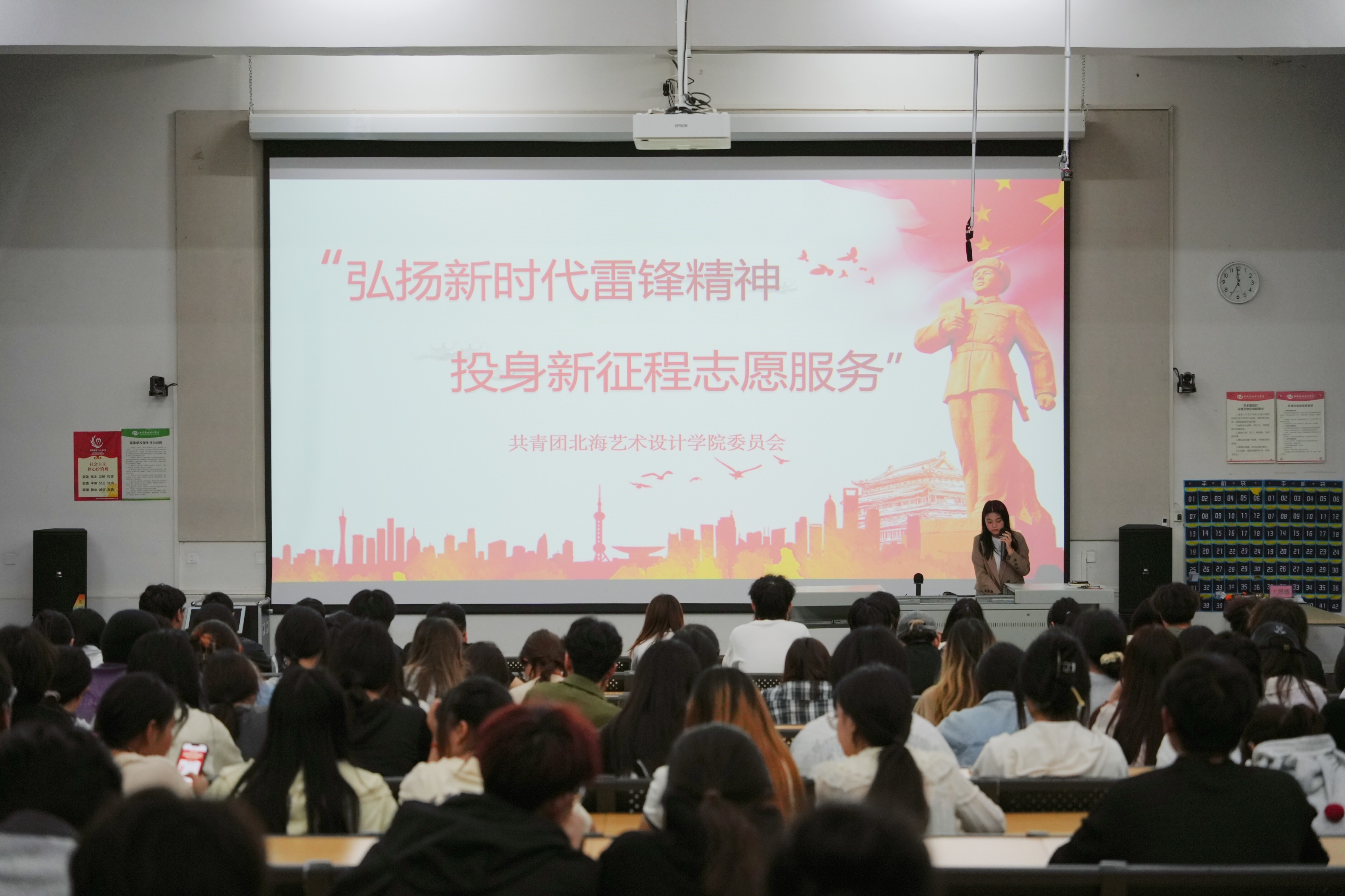 为深入学习贯彻党的二十大精神和习近平总书记关于学雷锋志愿服务工作的重要指示批示精神,进一步弘扬新时代雷锋精神,鼓励青年学生积极投身新征程志愿服务事业,4月8日,我校团委组织学生在公德楼107观看“弘扬新时代雷锋精神,投身新征程志愿服务”第二课堂系列公益讲座。