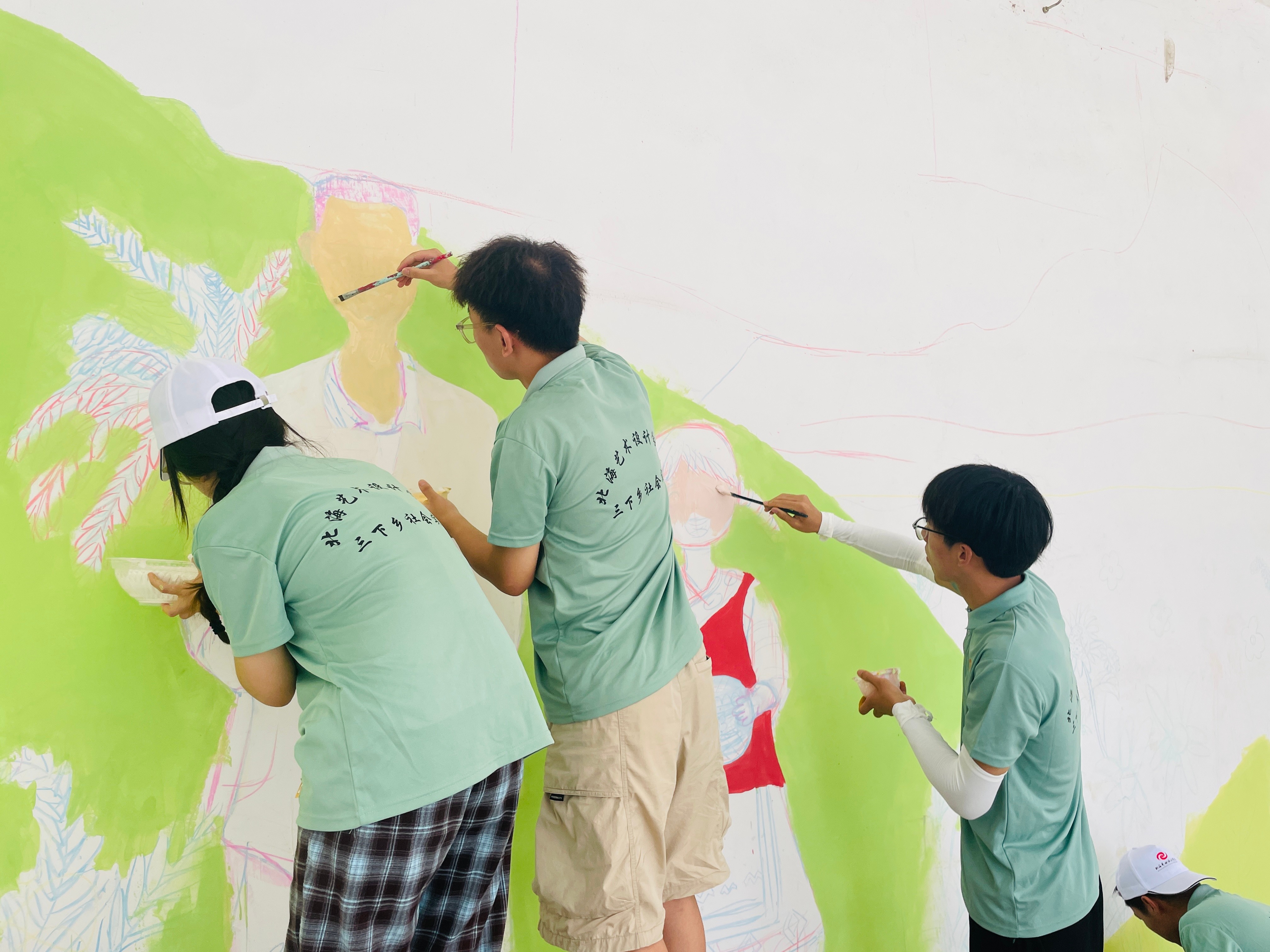 接下来,乡村振兴促进团与基层服务践行团同步开启温暖行动。乡村振兴促进团实地考察,深入田间地头,倾听农户心声。并用墙绘板报讲述乡村故事,融入社会主义核心价值观、乡风文明新风,深刻展现出“民族要复兴,民族必振兴”这一主题深刻。