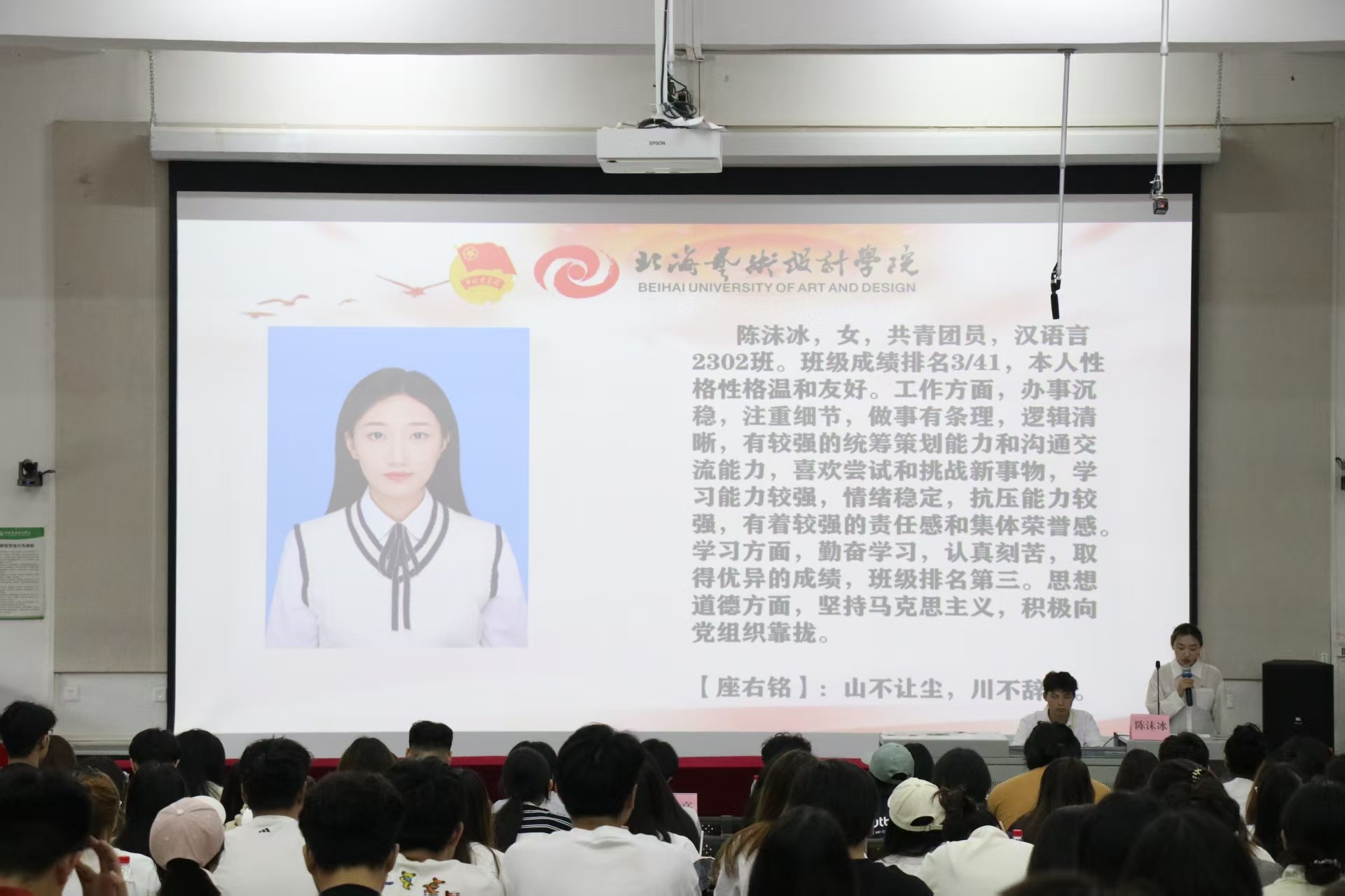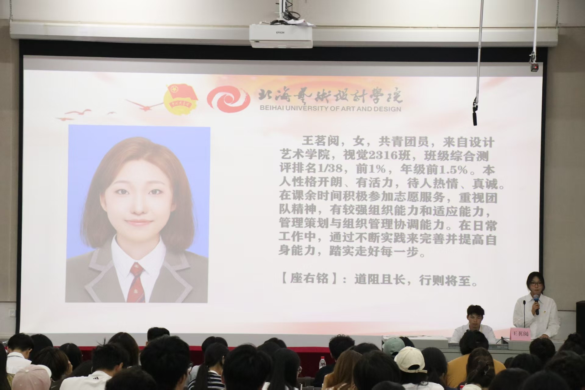 当悠扬激昂的校歌在会场内缓缓奏响,我校第十八次学生代表大会至此画上圆满句号。青春逢盛世,奋斗正当时,让我们将青春的智慧与力量倾注于学校的发展建设之中。在全体师生的勠力同心下,我校必将在新征程上镌刻下璀璨荣光,共同擘画更加灿烂的未来蓝图 。(高泽娅、戚叶洋/摄)大会秘书长杨美琪讲话
