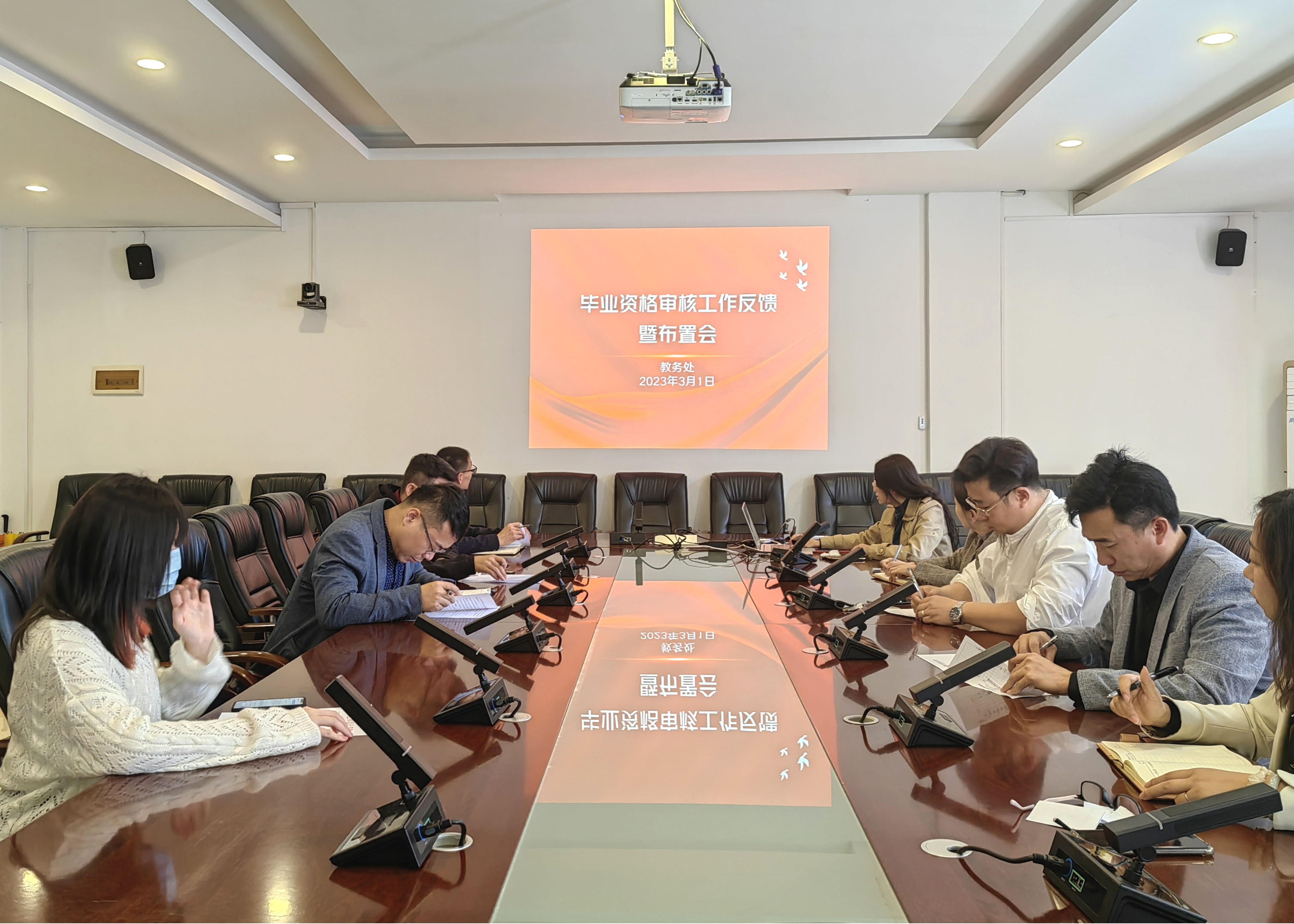 2023年3月1日上午,我校在行政楼212会议室召开毕业资格审核工作反馈暨2023届毕业生毕业资格审核工作布置会,主管教学副校长陶立阳、教务处处长武鹏程、教务处各副处长、各二级学院主管教学副院长以及校院两级学籍管理相关工作人员参加了本次会议。